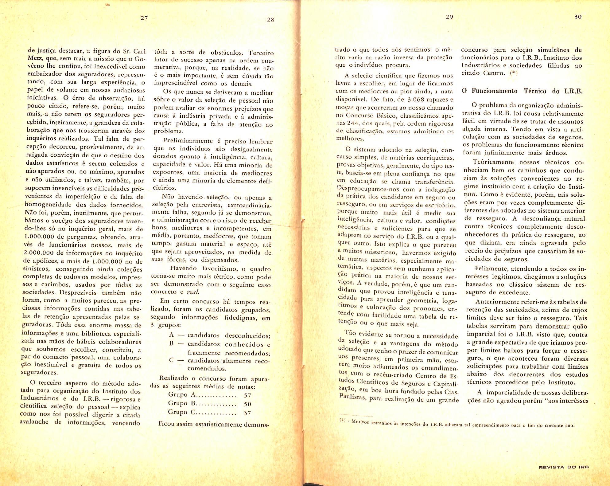 O grande coocurso do lostituto dos Industridrios e, mais recentemente o do Institute de Resseguros do Brasil, alem da selegao sistemitica dos funcionirios publicos, que o D.A.S.P. vem realizando, sao demoQStragdes de valor indiscutivel pelos crlterios tecnicos, em que se fundamentaram aqueles, e se fundamentam estes.