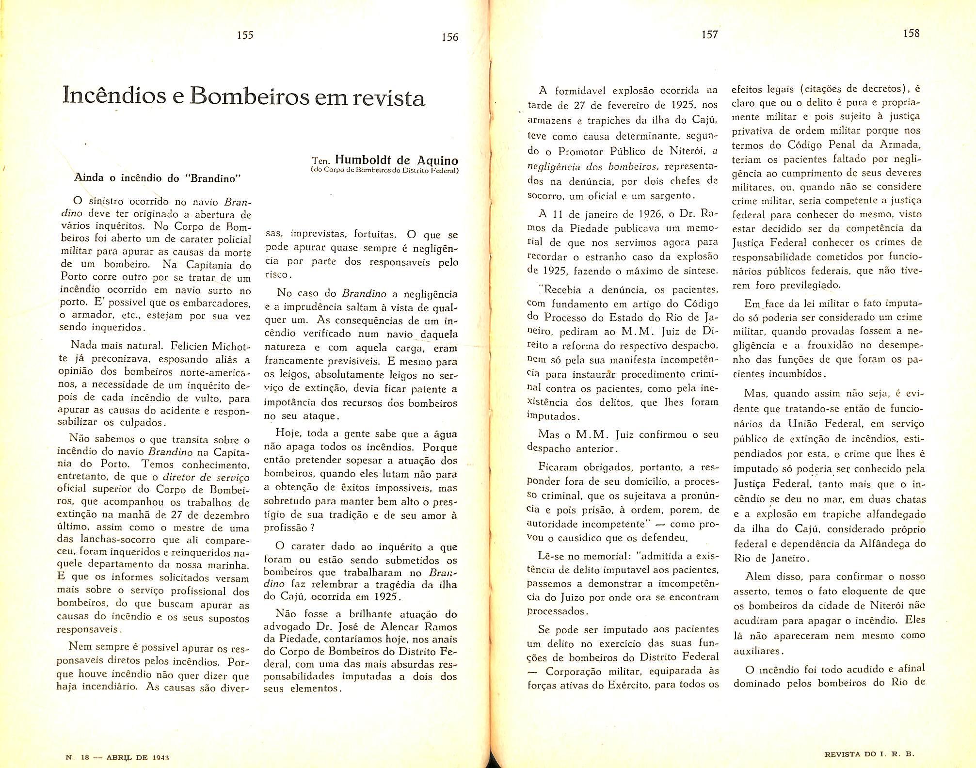 Ten. Humboldt de A a co7i1tra Incendios, e _decisões_Incêndio q�mo -:- Pareceres Vlsta-O I R B .. s e ombe1rosemRe• • • uOS relat6 dades - B"bli nosdas socie- 1 ografia- Noti· ., . c1ano.