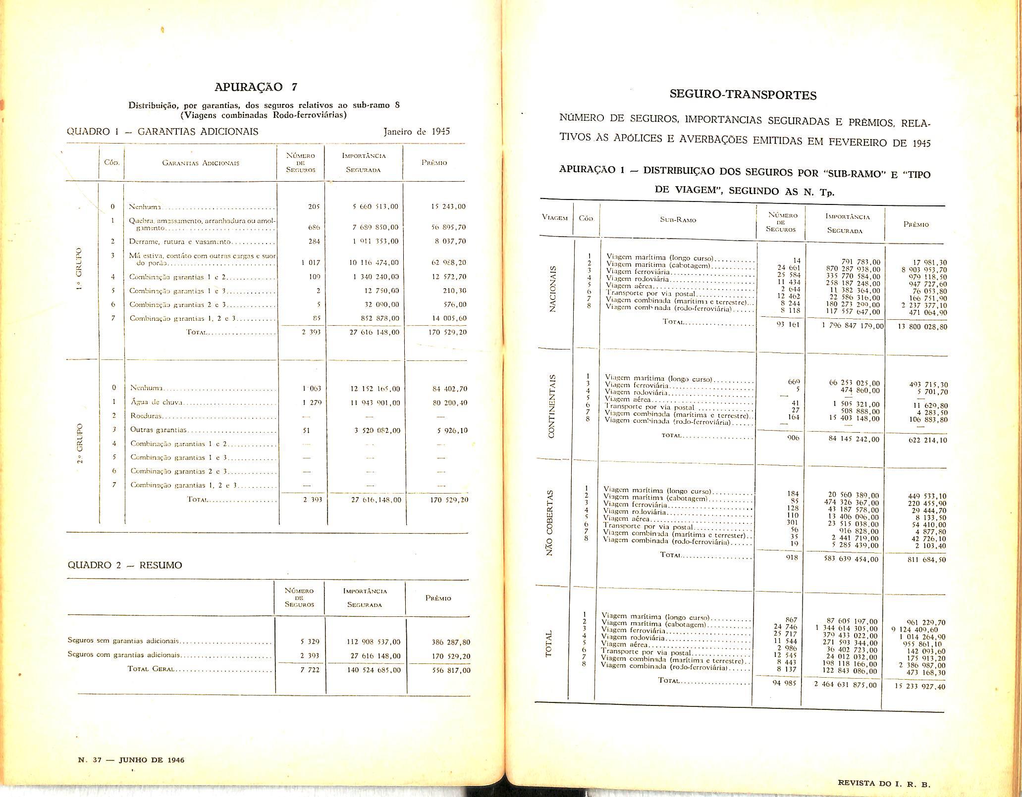 Revista de Seguros: Ano XXVi ns. 295 e 296 — Janeiro e Fevereiro de 1946.