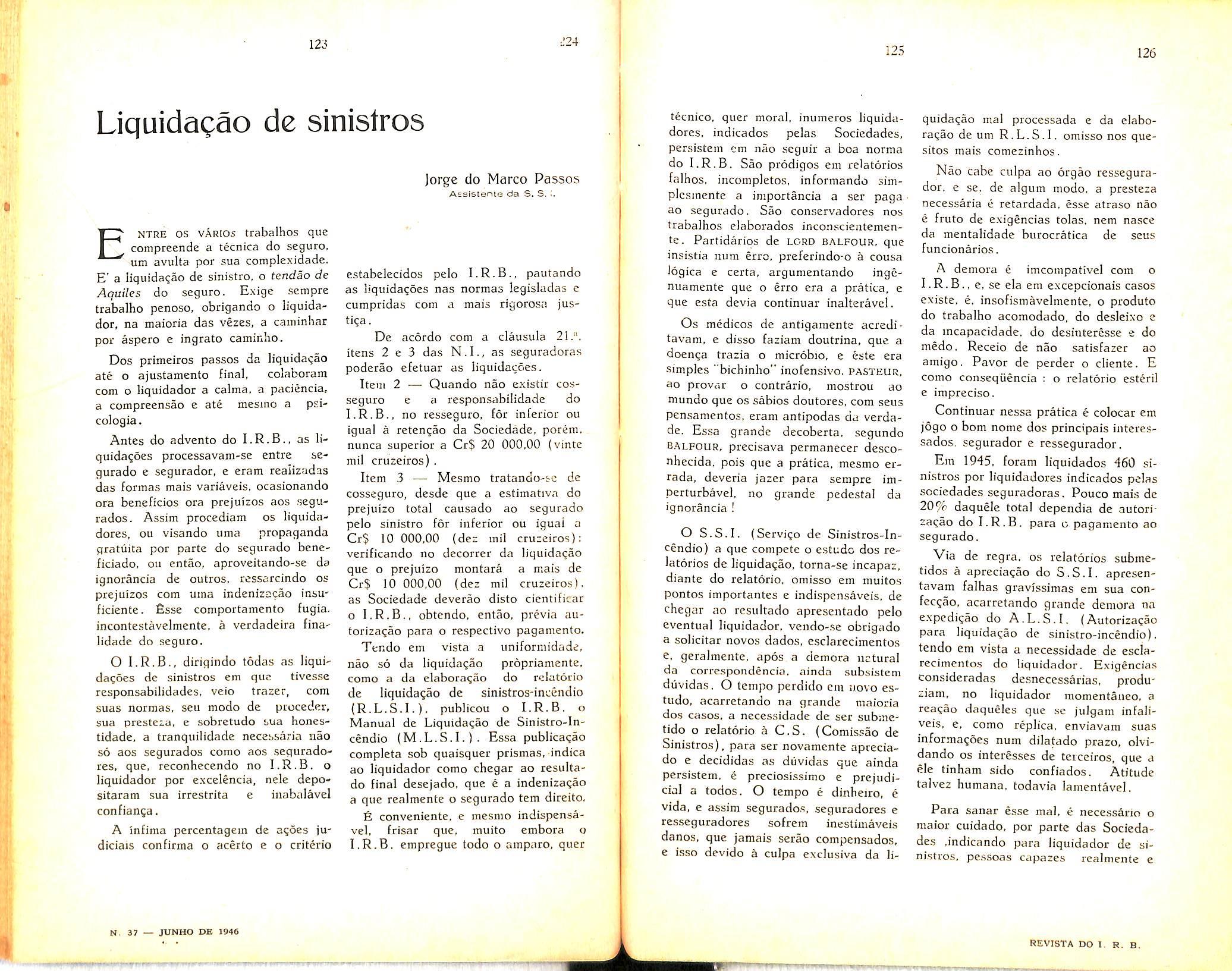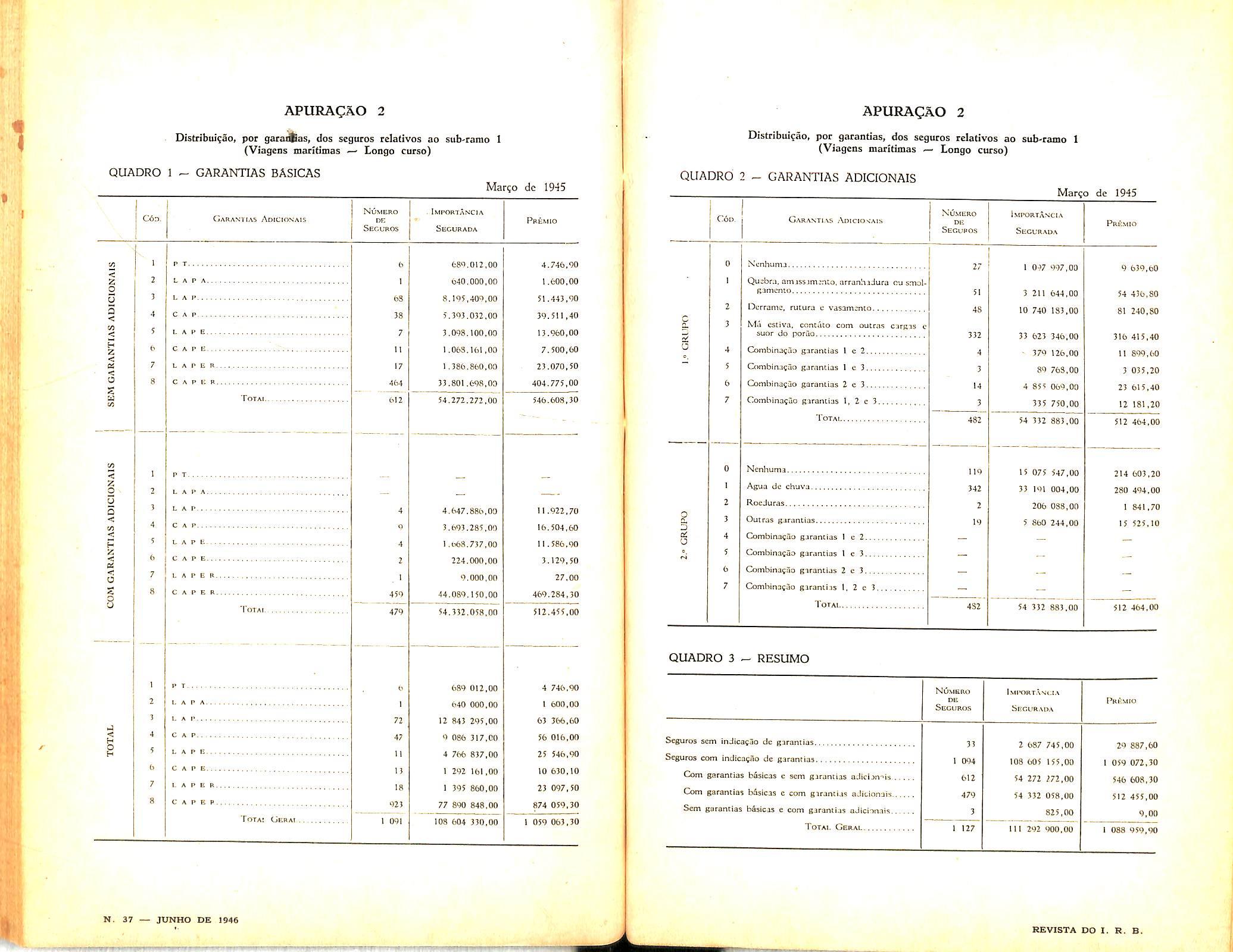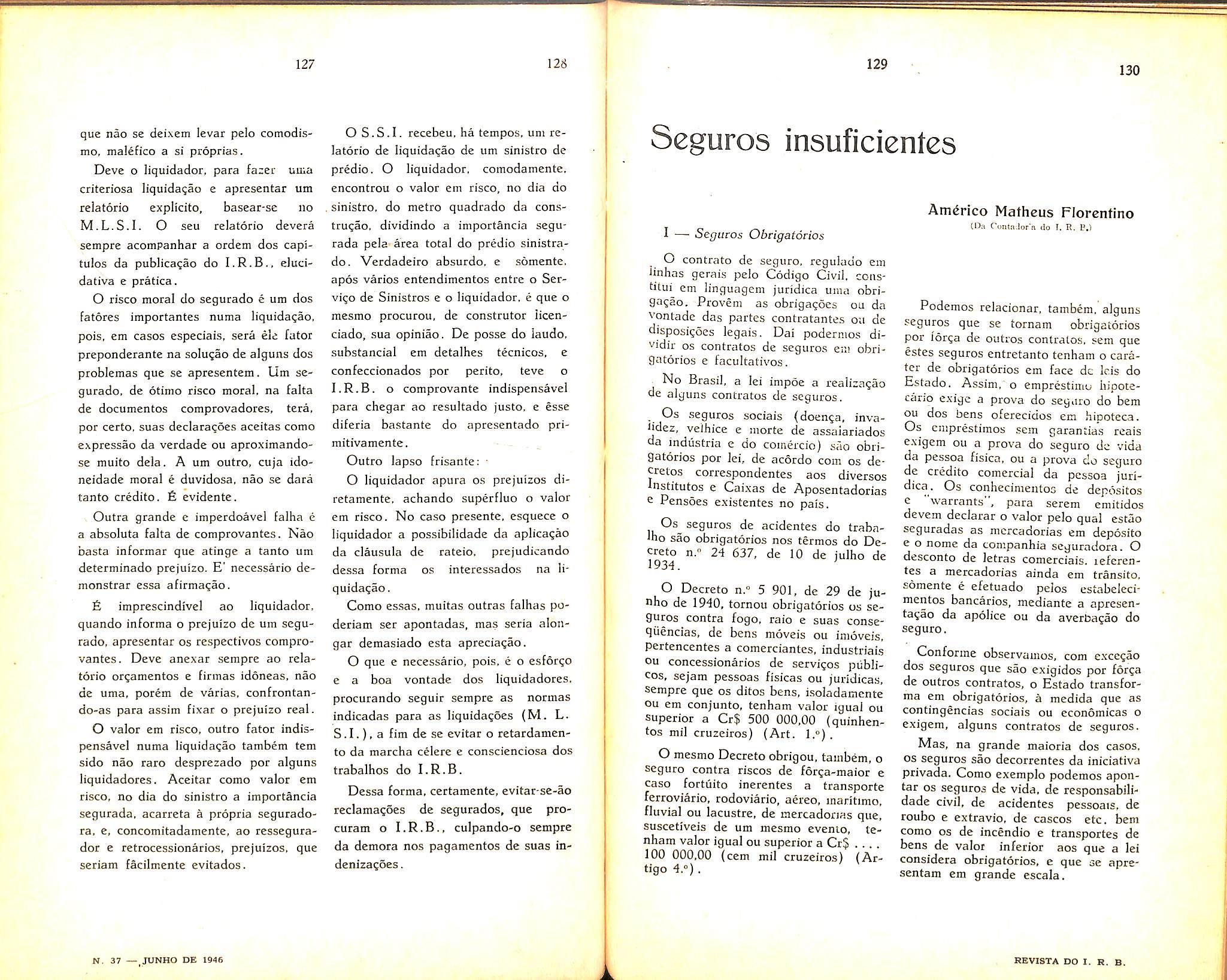 —Liquidagao de sinistros; Jorge do Marco Passos. col. 123 — Seguros insuficientes: Americo Matheus Florent.no. col. 129Dados Estatisticos. col, 139 — Tradugocs e Transcrigoes, col. 201 — Pareceres c Decisoes. col. 273 — Bibliografia, col 283 — Ncticiario, col. 287.