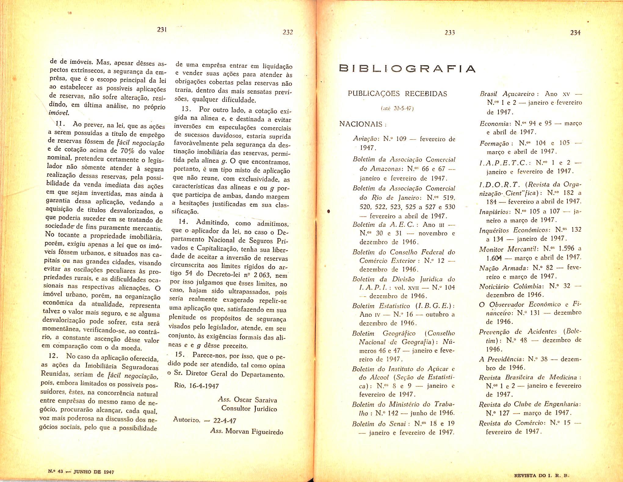Revista Industrial dc Sao Paulo: 25 — dezembro de 1946. Rcvista Rio Gcandense de Contabilidade: N.- H8 e H9 — Janeiro e fevereiro de 1947,