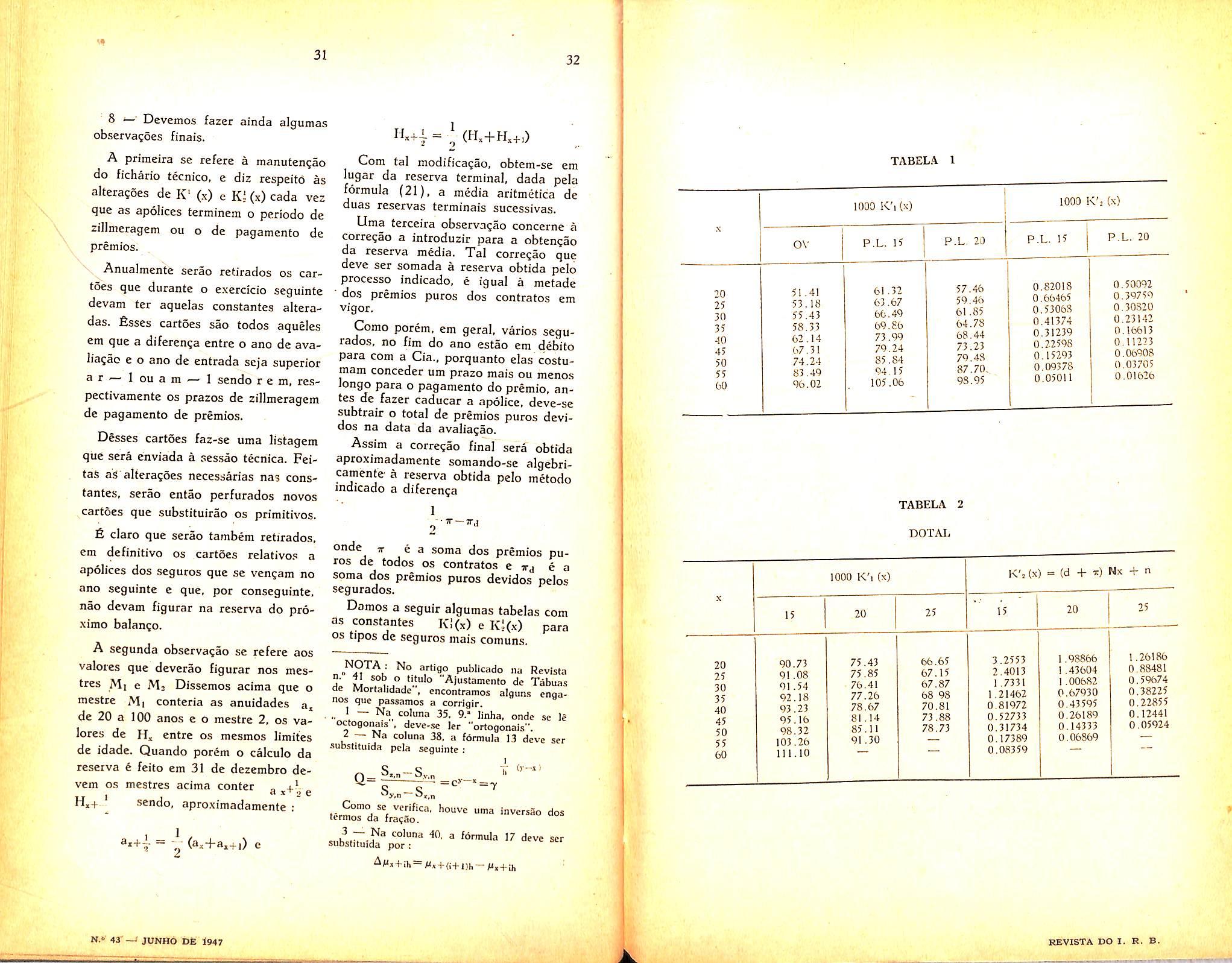 1 A finaiidade do presente art:go c, exclusivamente, fornecer os elementos tecnicos basicos para o calcuJo da Keserva Matematica de uma companhin de grande porte. Trata-se pois de urn artjgo de natureza pratica. sobre o qua! nao temos qualquer pretensac de originalidade teorica. JuJgamos no entanto que eie podera apresentar alguma utilidade.