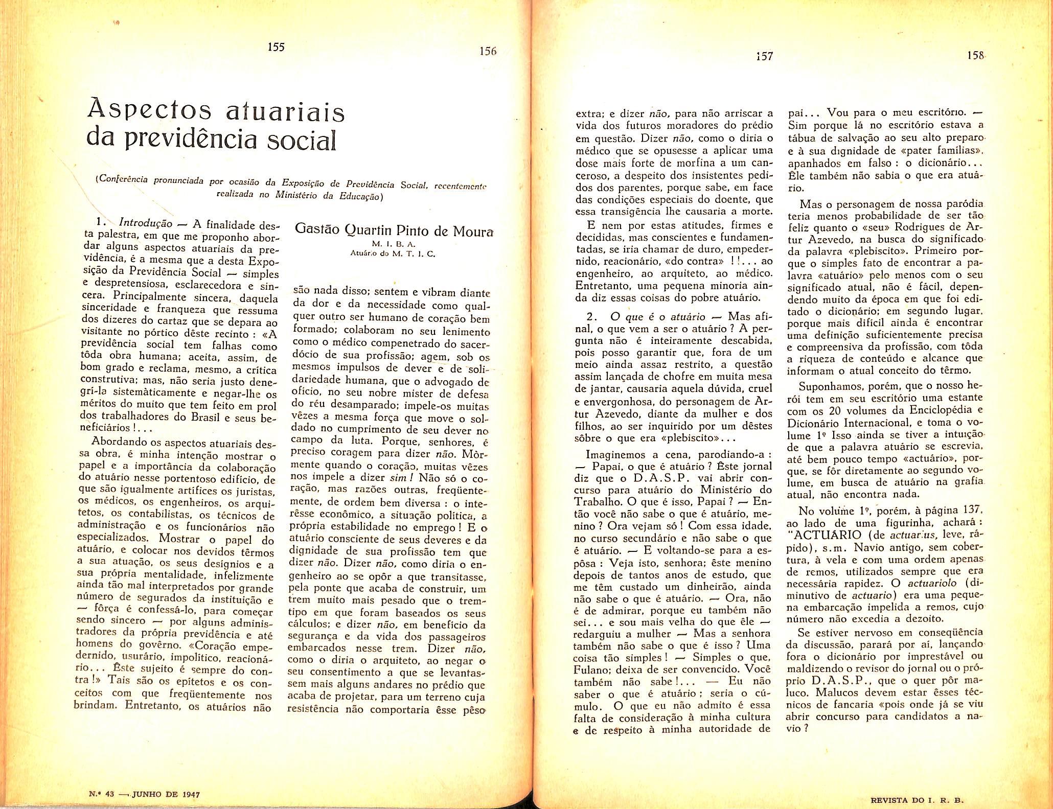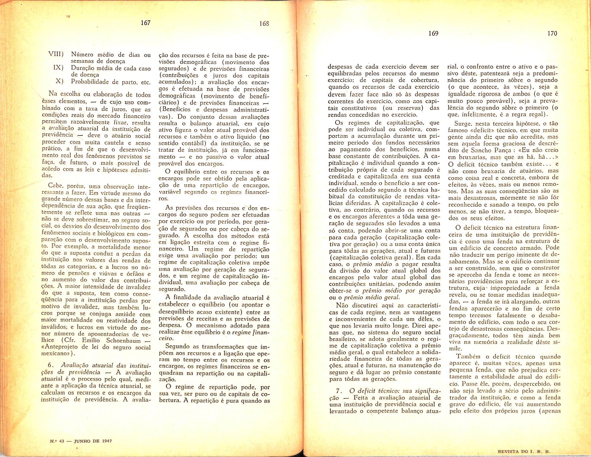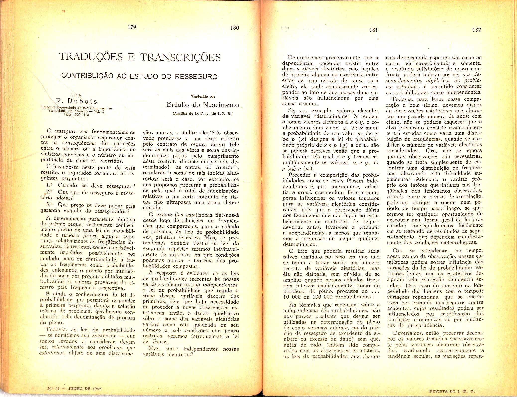 — Estudo sobre o ramo Vida; Weber Jose Ferreira, col. 49 — Das obriga^oes do seguradoE ; Sua responsabiiidade adstrita ao risco: David Campista Filho, col. 57 — Desenvolvimento do seguro nos paises das Americas; Eng. liodrigo de Andrade Medicis, col. 63 •— A melhoria de embalagens como preven^ao do risco de roubo; A. O. Zander, col. 79 — Dados Estatisticos, col, 83 •— O alcance do controle, fatoE de delega^ao da autoridade; Herminio Augusta Faria, col. H9 •— Aspectos atuariais da previdencia so cial; Gastao Quartfn Pinto de Moura, col." 155 — Tradu^oes e Transcri^oes, col. 179 — Legisla?ao Brasileira de Seguros: Decreto n." 22.556 de 1-4-47, col. 193 — Parecercs e Decisoes, col. 199 — Bibliografia, 233 — Noticiario, col. 239.