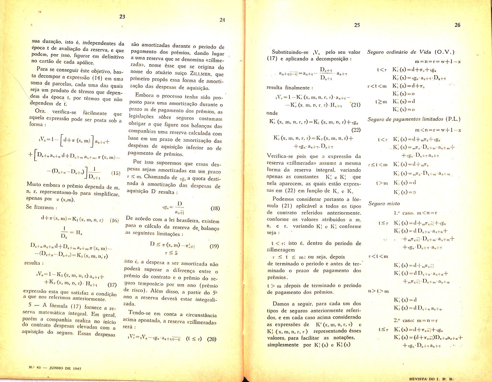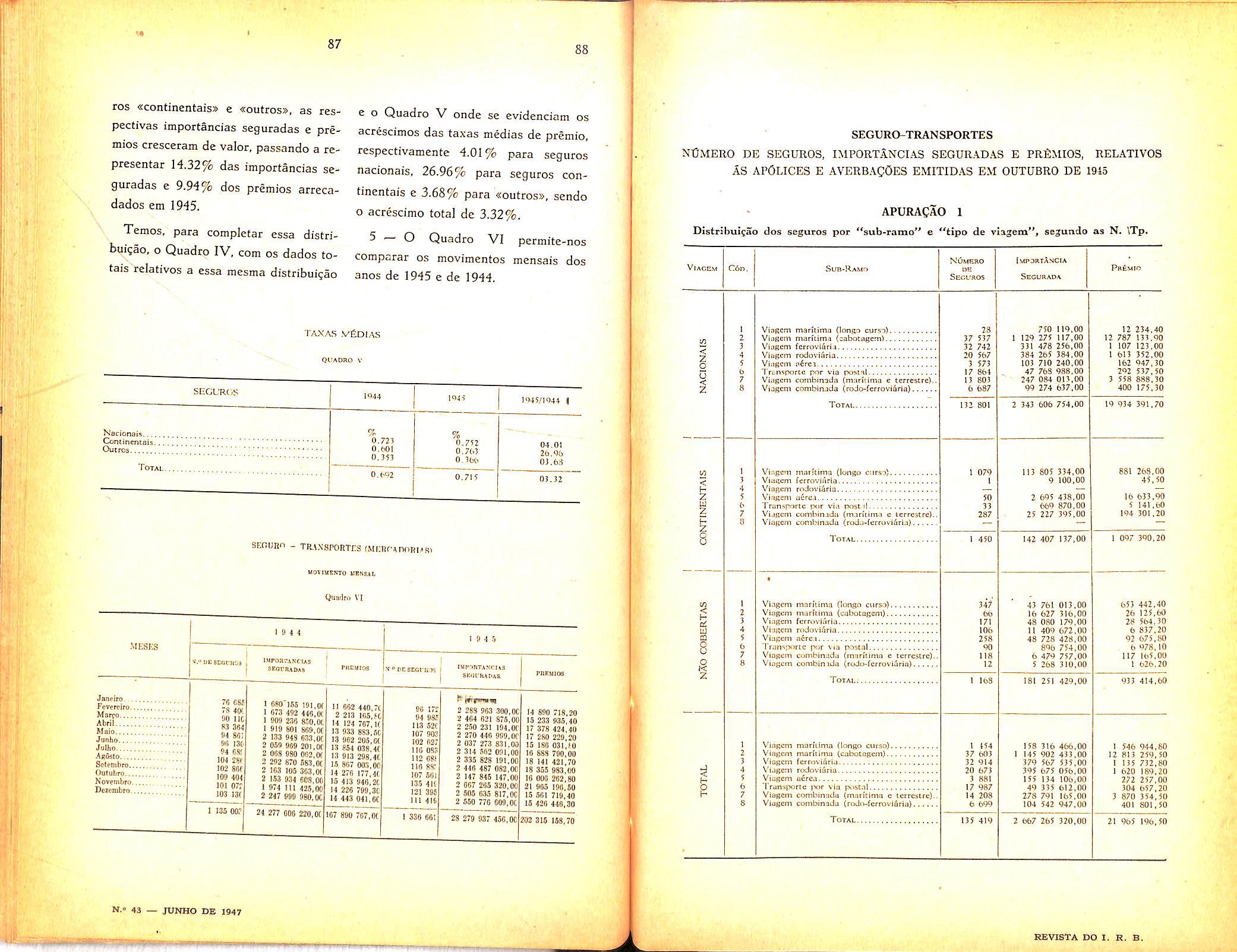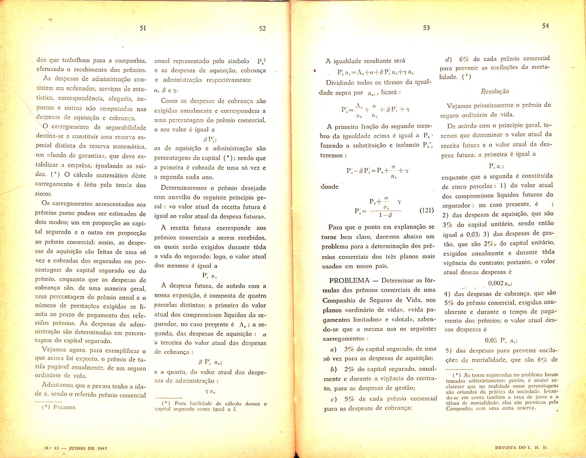 — Calculo da Resei'va Matematica; }oao Lyra Madeira, col. 19 — Vistoria em cargas avariadas no transporte maritimo; joao Vicente Carnpos, col. 37