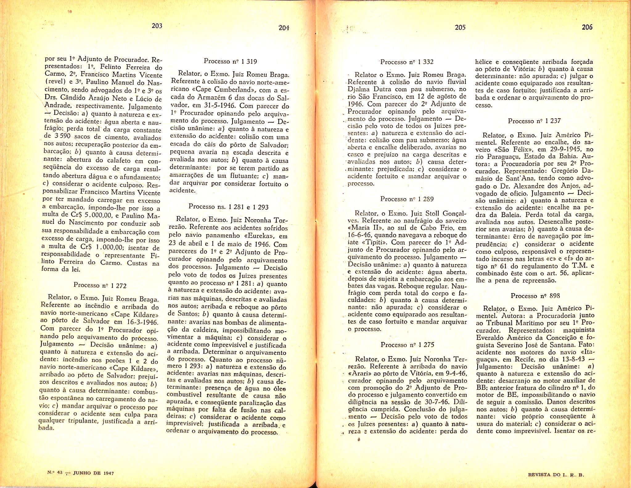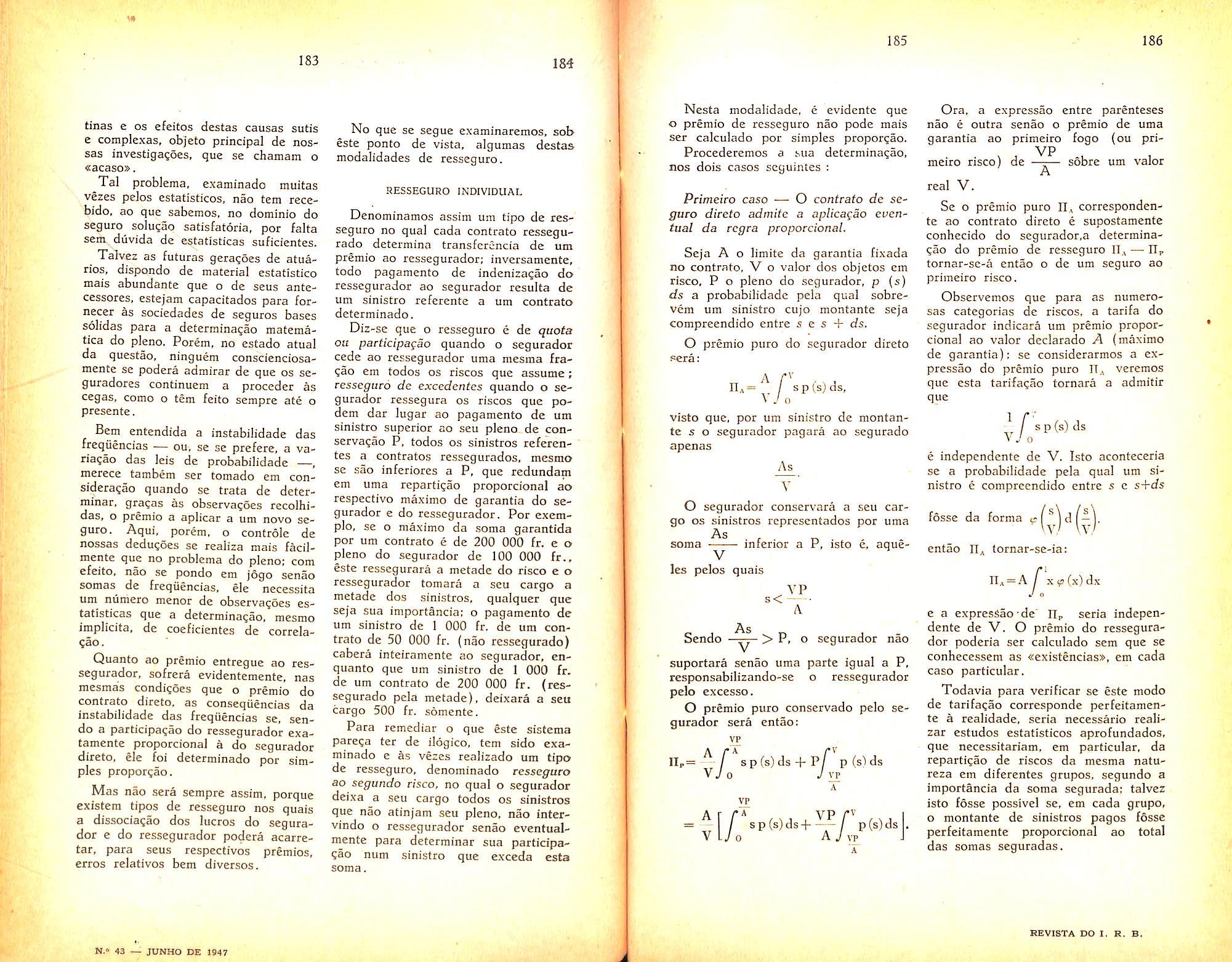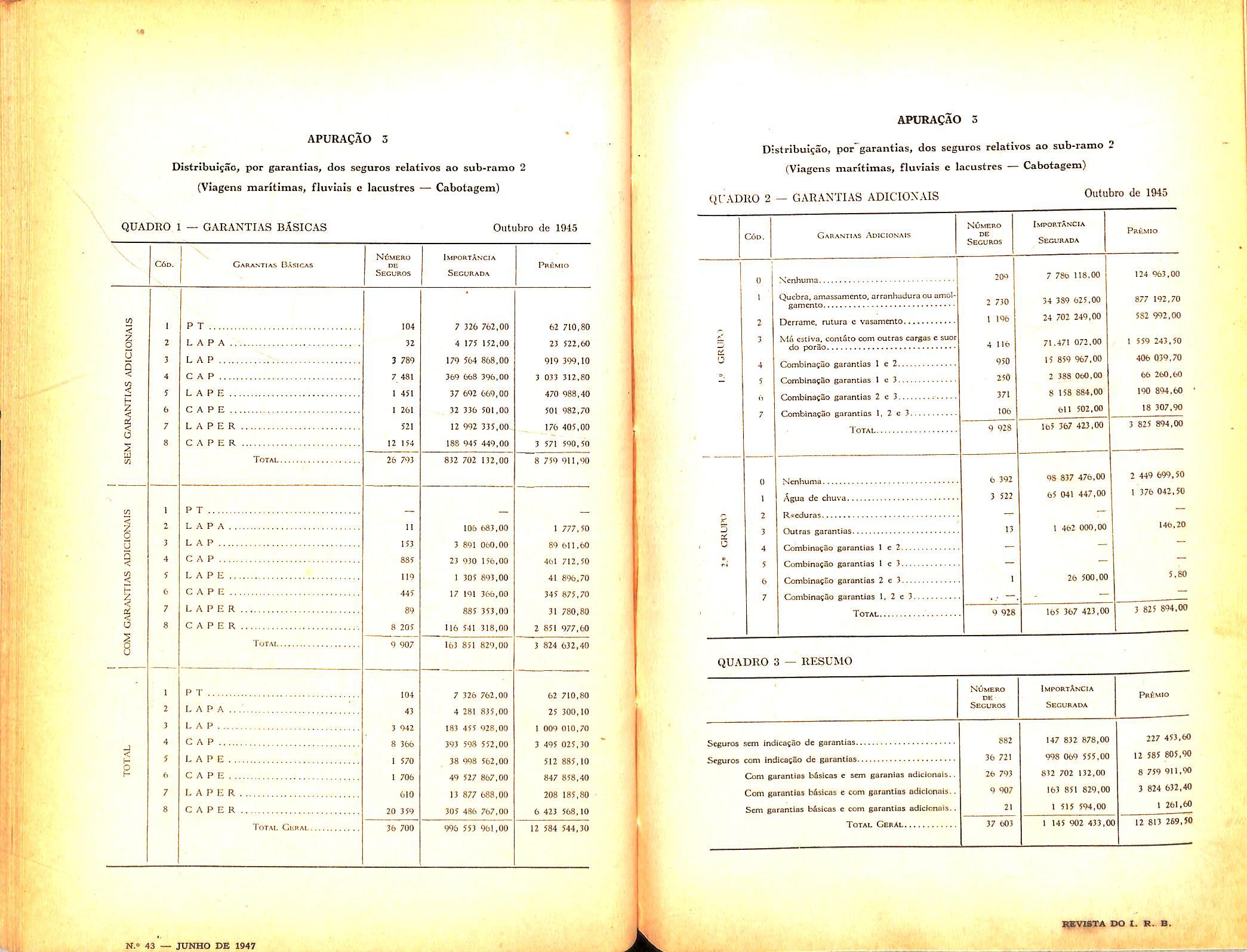 — Calculo da Resei'va Matematica; }oao Lyra Madeira, col. 19 — Vistoria em cargas avariadas no transporte maritimo; joao Vicente Carnpos, col. 37