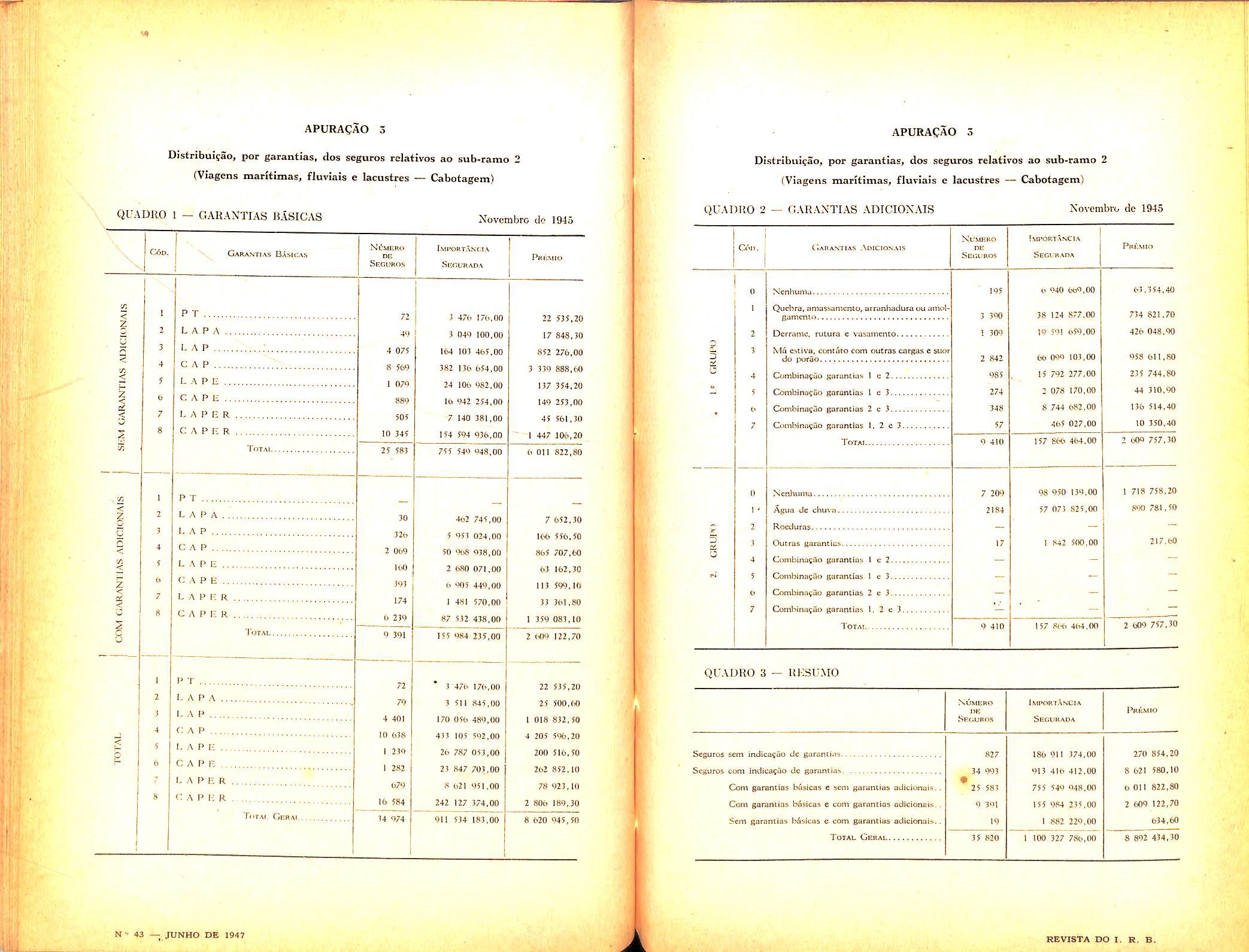 Em principios de 1945, para corriglr aquela situagao. que se estava tornando cada vez mais onerosa para os seguradores, foram alvitradas ao I.