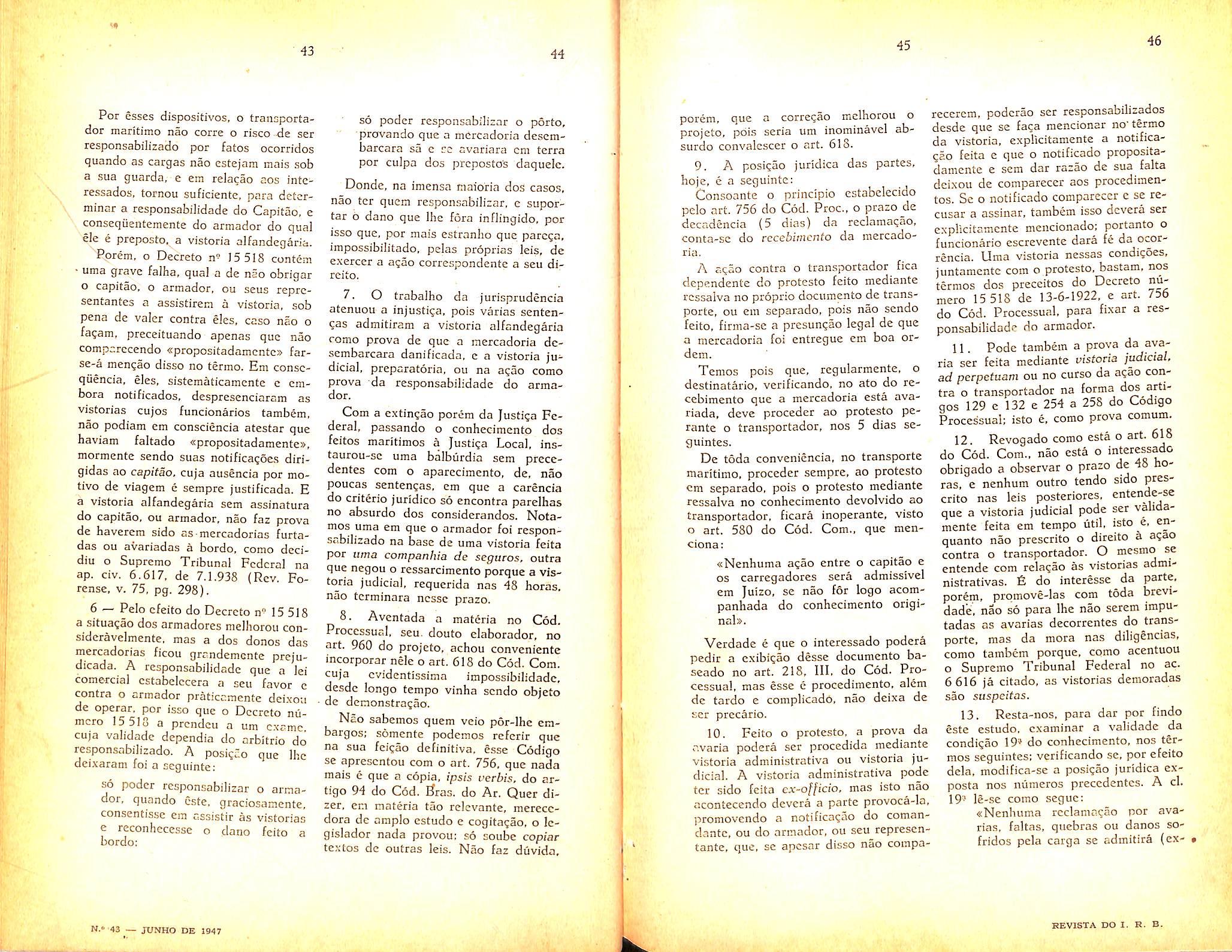 Como se ve procurou o I.R.B., desde 1944, por todos os meios, conseguir a elimina^ao do surto de roubos, para evitar o aumento de taxas quc, fatalmente viria oncrar o prego das utilidades.