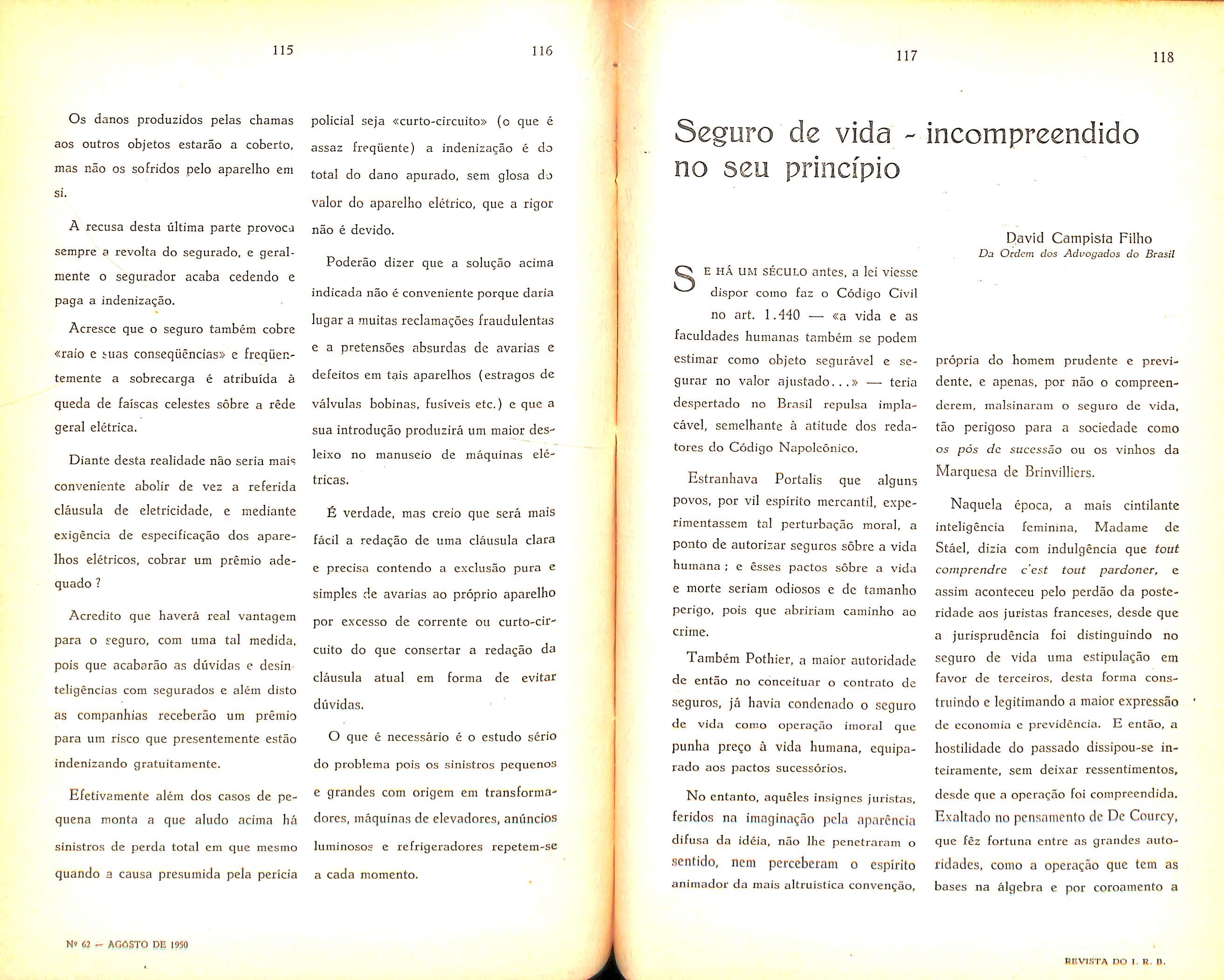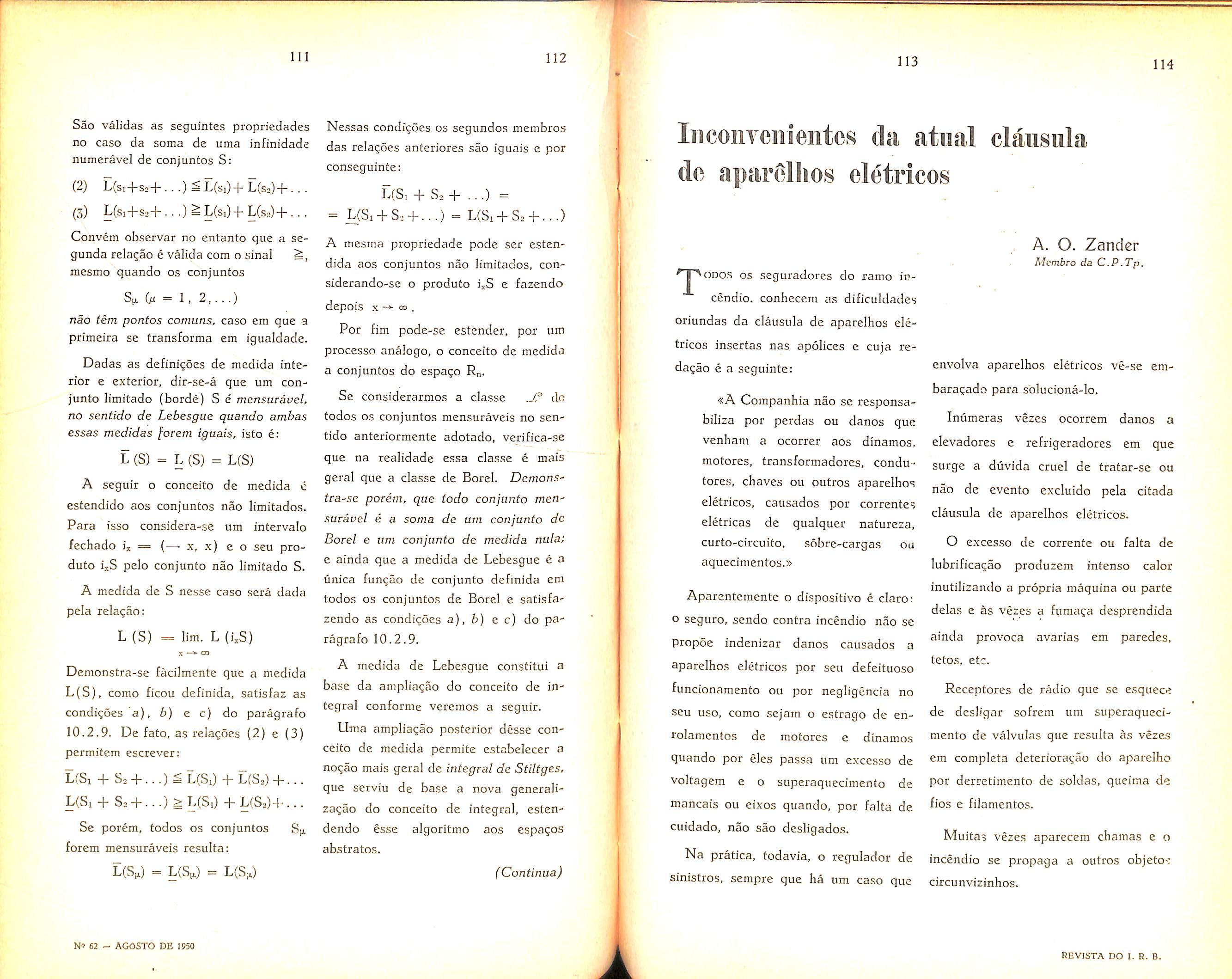 — Inconvcnientcs da atual clausula de aparclhos eletricos; A. O. Zander, col. 113 Seguro de Vida-incompreendido no seu principio; David Cam' pista Filho, col. 117 Os sistemas dc transportes do Brasil; Gilson Cortines de Freitas, col. 123 Seguro-incendio cobrindo propriedades sob o regime dc condominio, col. 139 — Dados Estatisticos, col. 153 Traducocs e TranscricSes, col. 165 — Pareceres e Dccisoes, col. 179 Consu]t6rio Tficnico. col. 193 —Boletim do I.R,B., col. 199