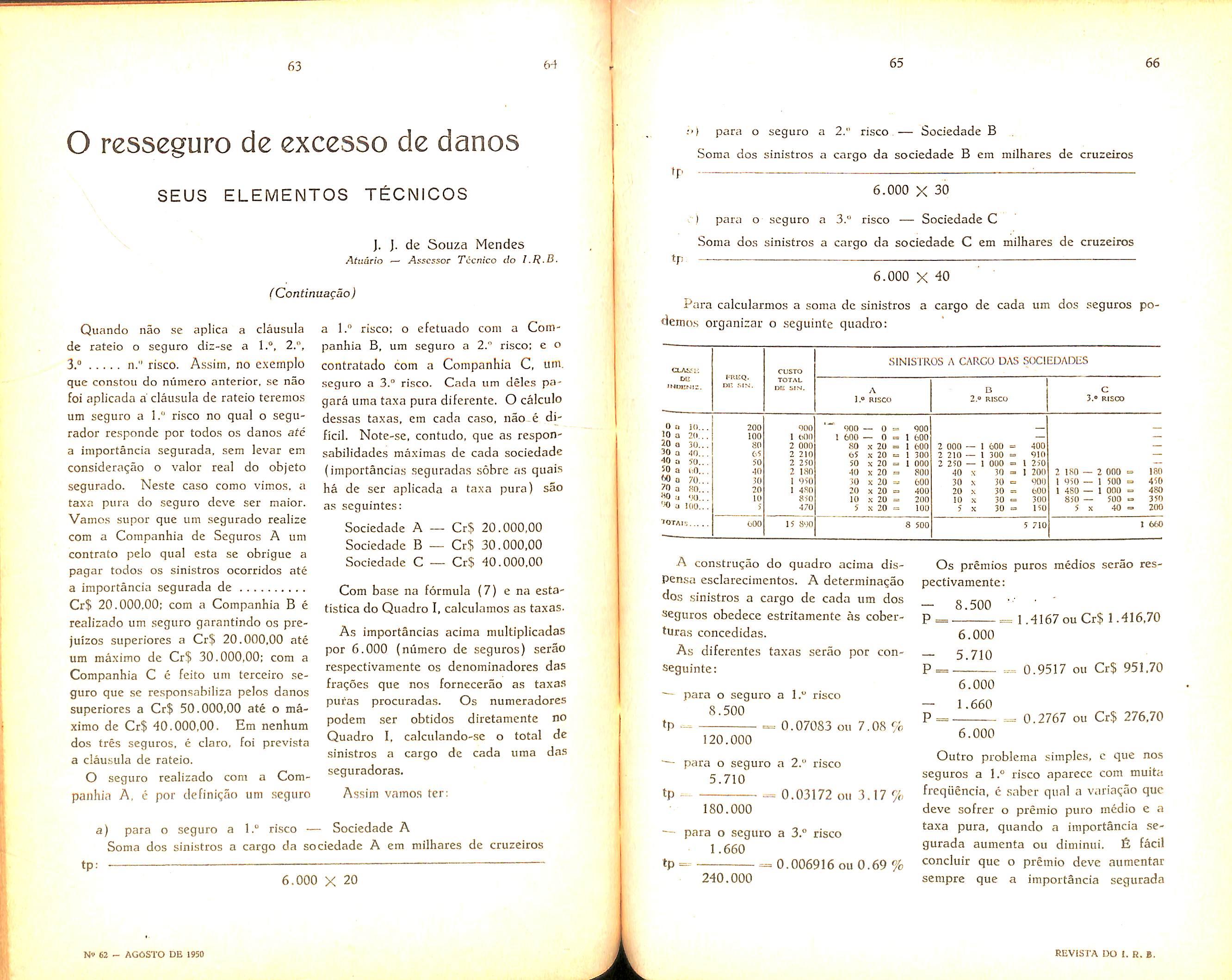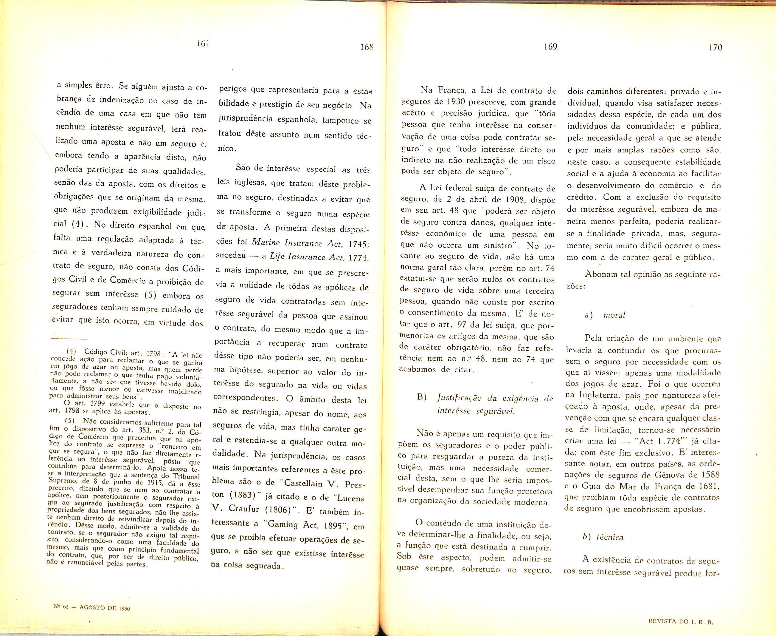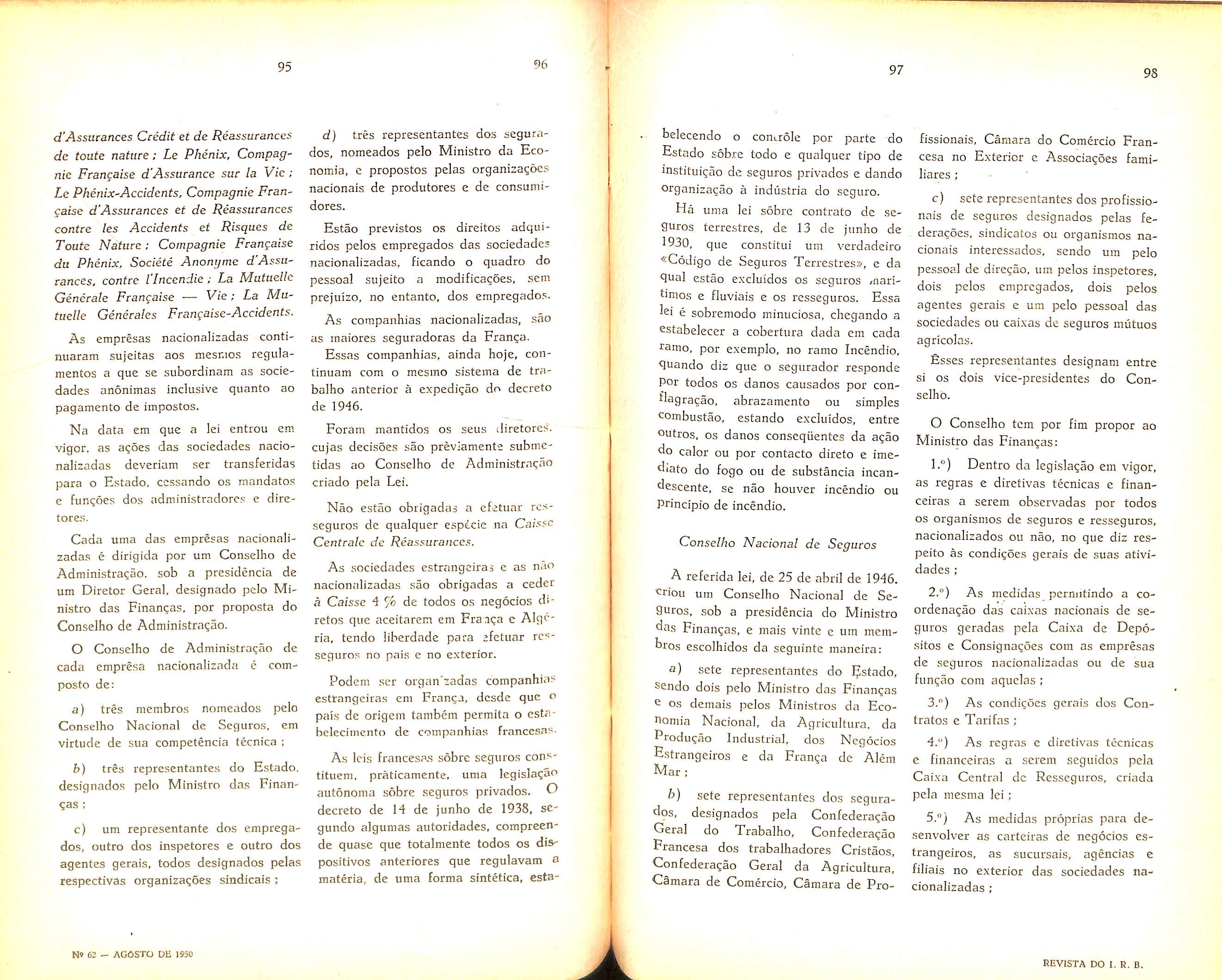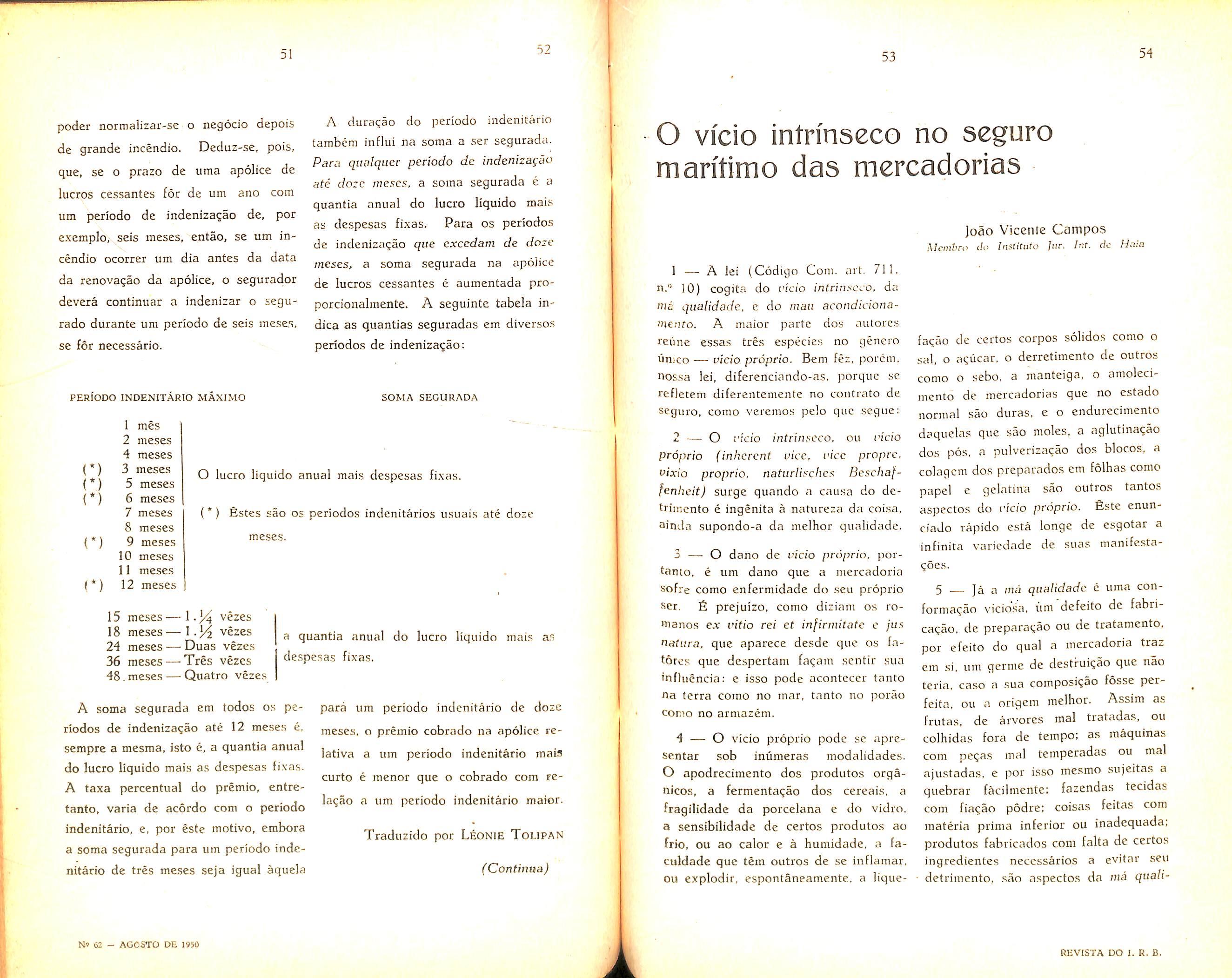 O seguco e o resseguro na balan^a de pagamentos do Brasil; Mario Trin" dade, col. 5 Majoragao das aposcn^ tadorias e pensoes a cargo das insti' tuigSes dc previdencia social; Joao Lyra Madeira, col. 23 — O seguro dc lucros ccssantes; H. Clayton Cham' bers, col. 33 — O vicio intrinscco no seguro maritimo das mercadorias; Joao Vicente Campos, col. 53 — O resse guro de excesso dc danos; /. /. de Souza Mendes, col. 63 — Principios Juridicos aplic&veis em materia de seguros; Jose SoUero Filho, col. 75 — Notas sobrc leis franccsas dc seguros privados; Alfredo Carlos Pestana Junior, col. 93 — Analise das series hist6ricas; Joao Lyra Madeira, col. 101