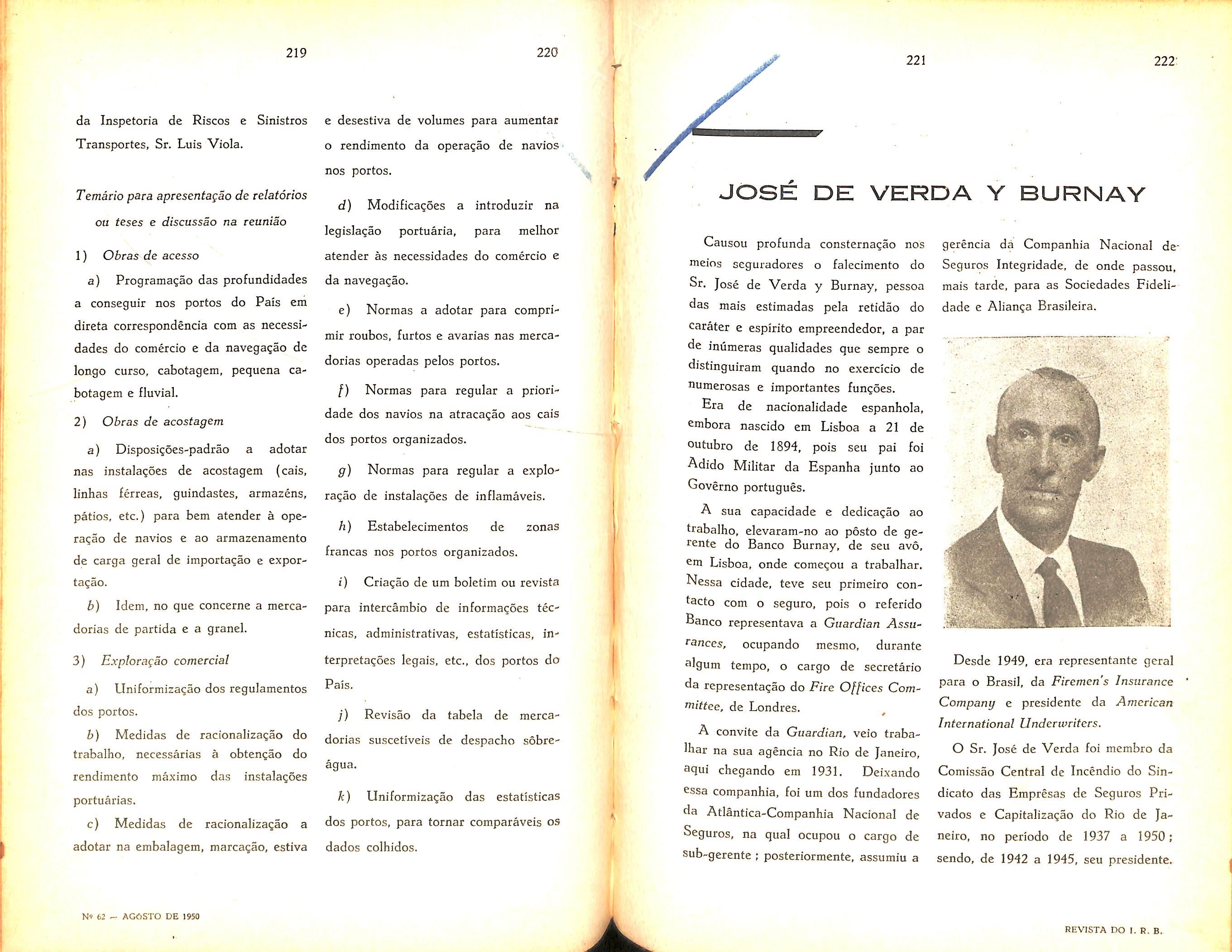 Aceitando o honroso convite que Ihe dirigiu o Departarnento Nacional de Portos, Rios e Canals, o I.R.B. se sente satis[eito em prestigiar a Reuniao de Adrninistragoes de Portos», dela participando, desejoso de colaborar, na medida de suas possibili' dades, para o seu complete exito e integral consecugao dos eleuados e nobres objetiuos que inspiram e justificam sua realizagao. (P.