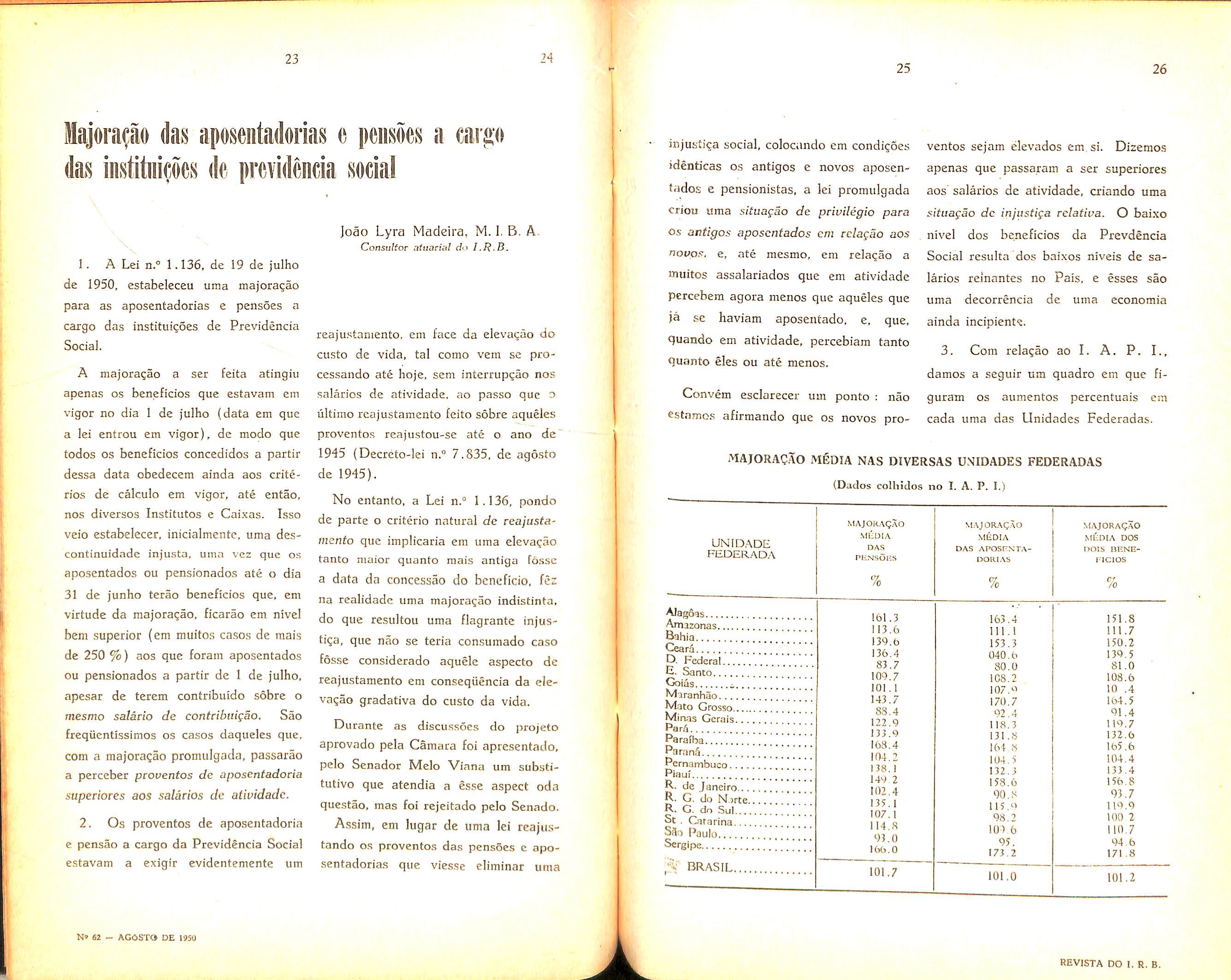 1. A Lei n.^ 1.136, de 19 de julho de 1950, cstabeleceu uma majora^ao para as aposentadorias e pensoes a cargo das instituicoes de Previdencia Social.
