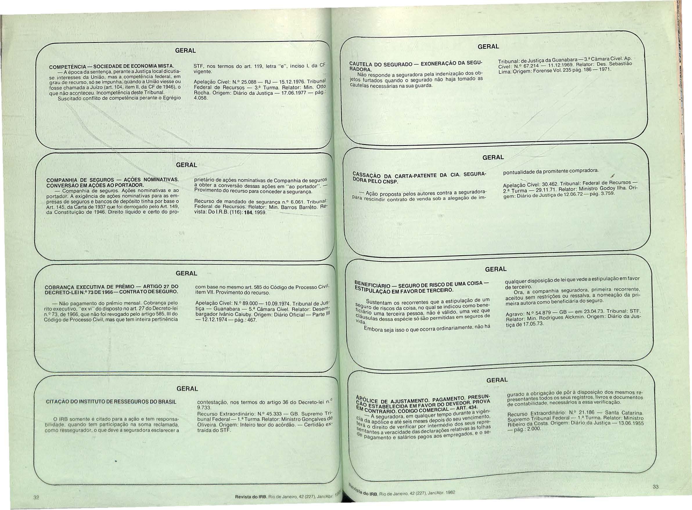 Coletanea de decisoes do poder judicidrio brasilelro, naquilo que diz respeito ao seguro 31