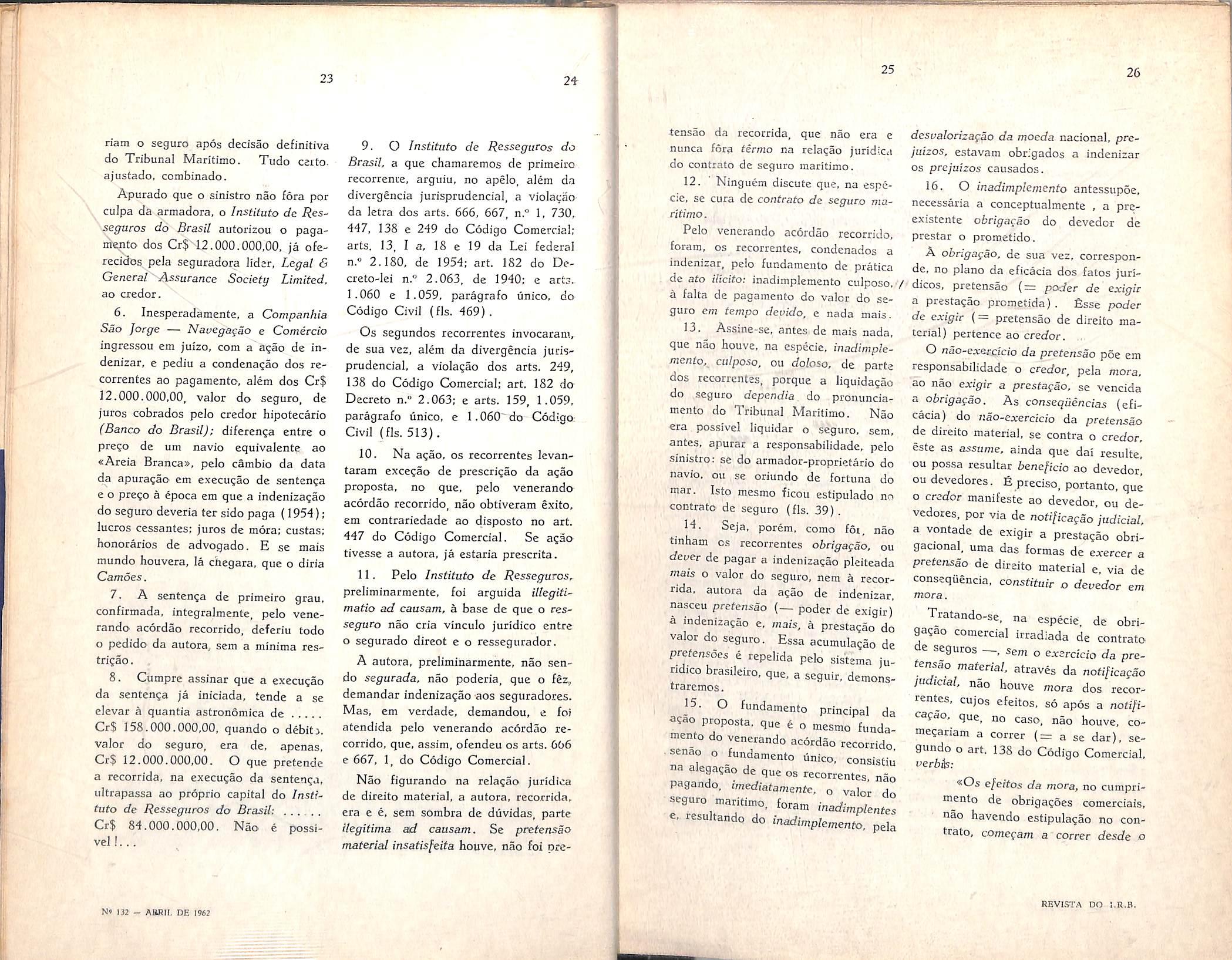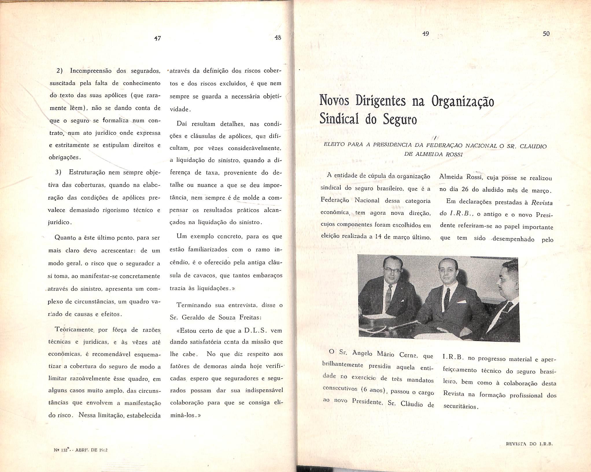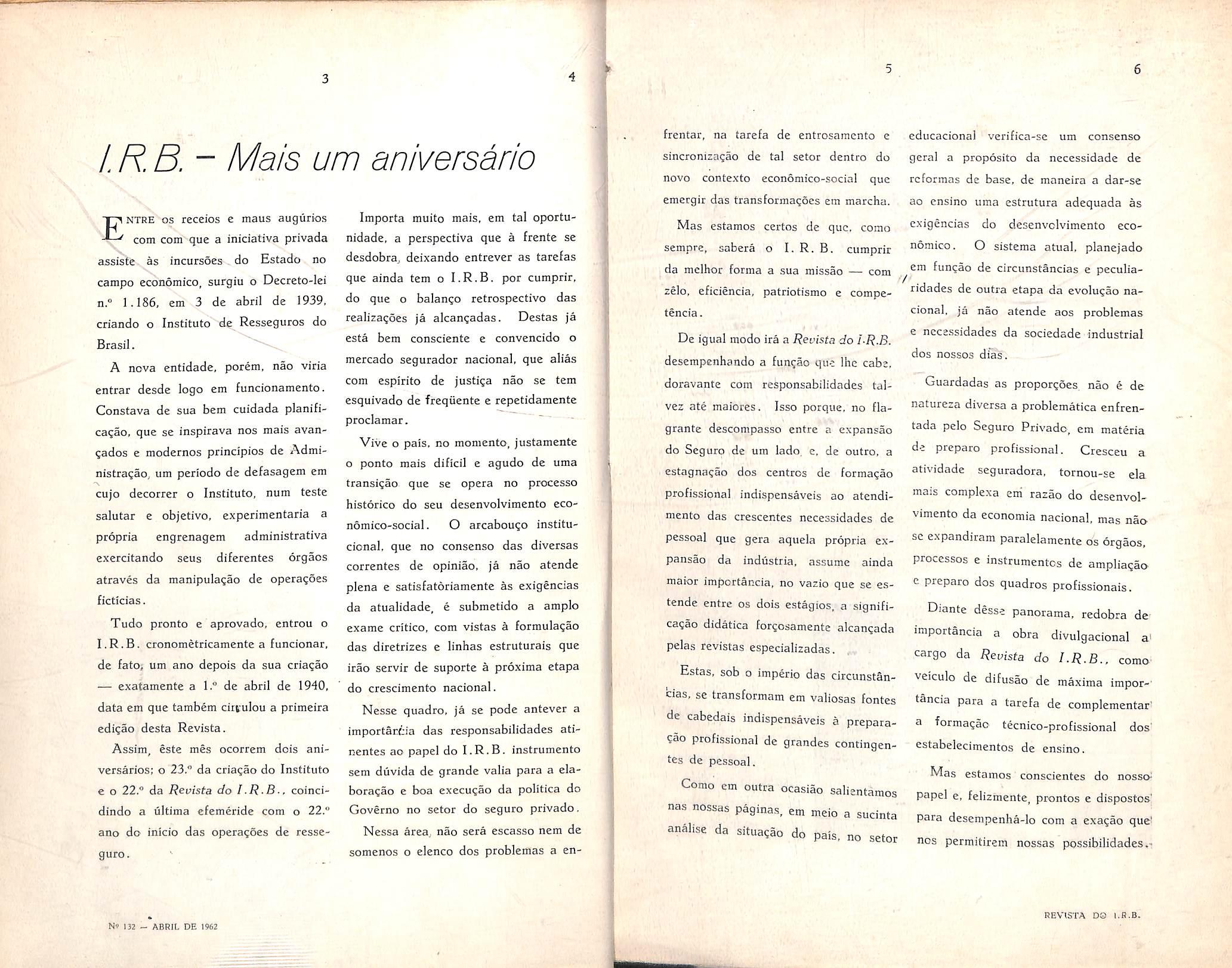 Assim, este mcs ocorrem dcis aniversarios; o 23." da criaeao do Instituto c o 22." da Revista do I.R.B■. coincidindo a ultima efemeride com o 22." ano do inlcio das opera^bes de resseguro.