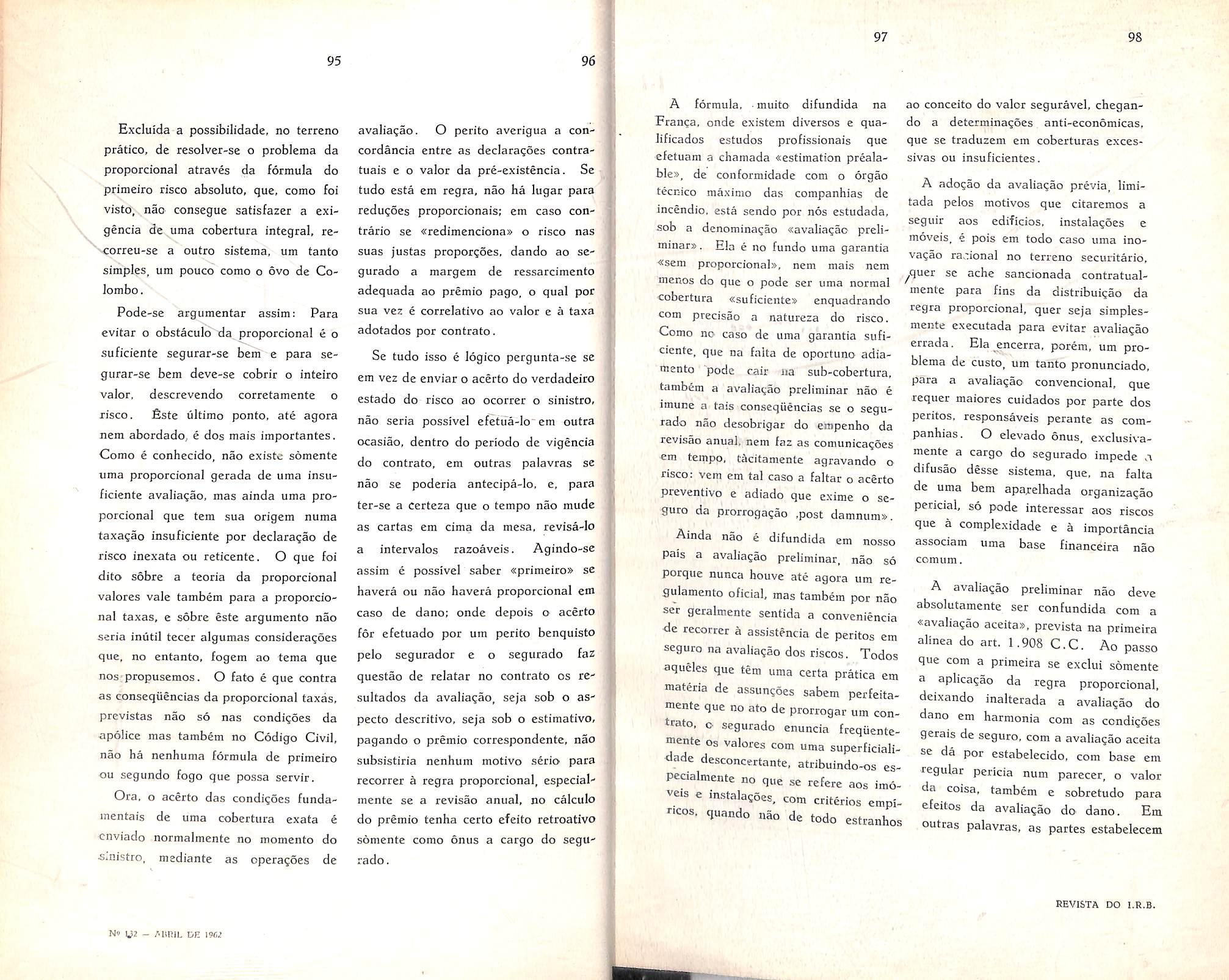 «Para atingir o ultimo estagio em materia de cobertura de seguro adequada a natureza de cada risco, vem OS tecnicos do pais estudando com interesse a implantagao em bases tecnicas. do seguro a primeiro risco. ou seja, do seguro em que o limite dos danos maximos provaveis representa a importancia maxima segurada,