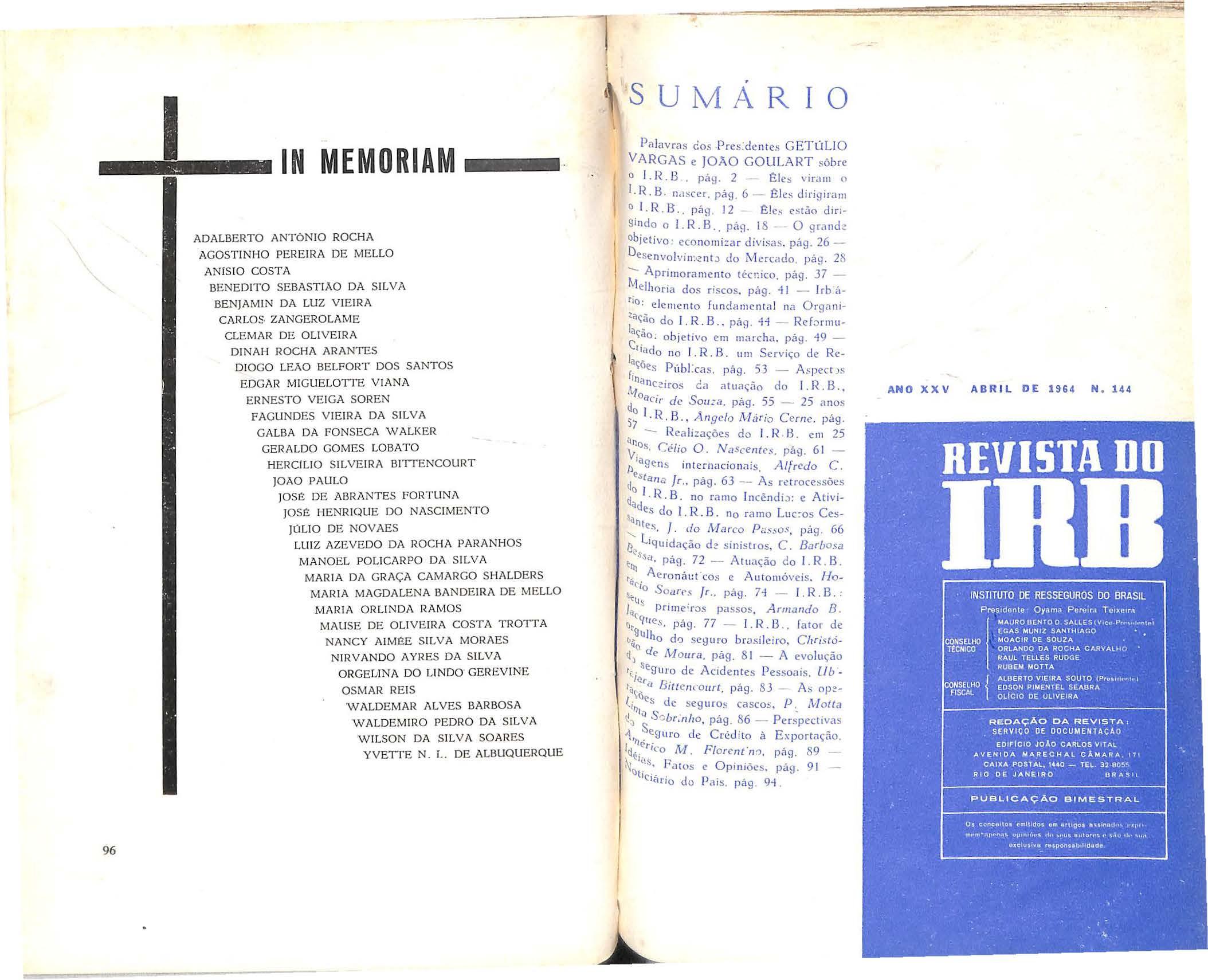 INO XXV ABRIL DE 1964 N. 144 >-• v.ji.'A. ;•.. y\ ifiA-vSfet, ^ -51 25 k.ANOSJ DDERES5EGURD5DQBRASIL