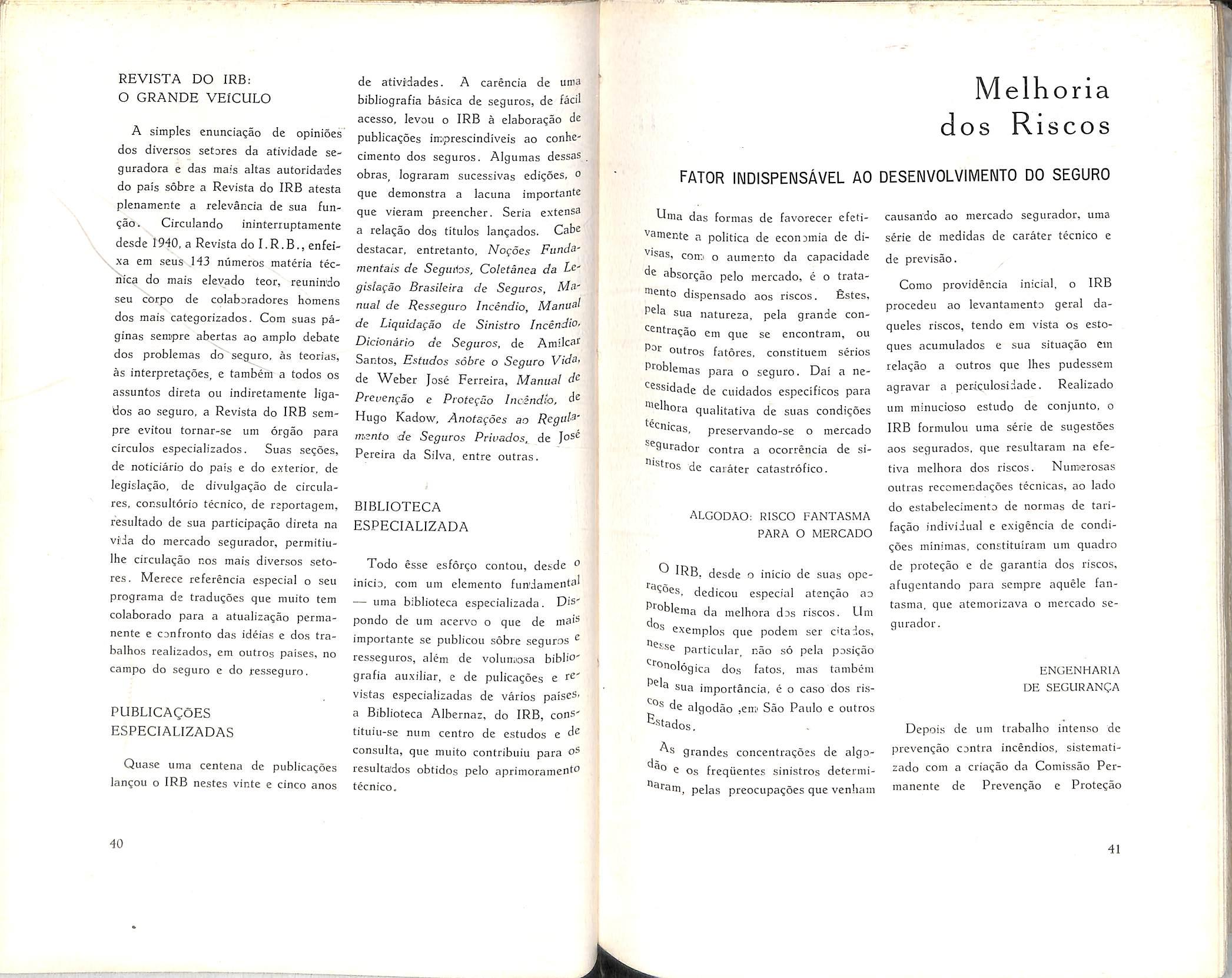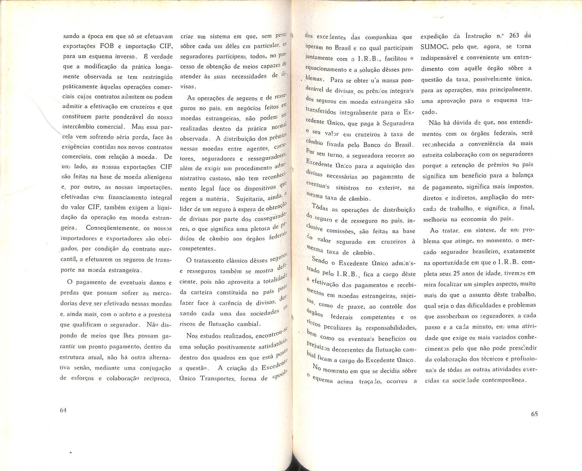 Espera a Administragao do Institato de Res seguros do Brasil, assim. proporcionar ao leitor, se nao o relate complete e enriquecido per massa enorme de detalhes, ao menos o bastante para uma visao exata e panoramica da agao desenvolvida pela entidade no curse da sua existencia, bem coma dos servigos que prestou ao Seguro e a economia do pais.
