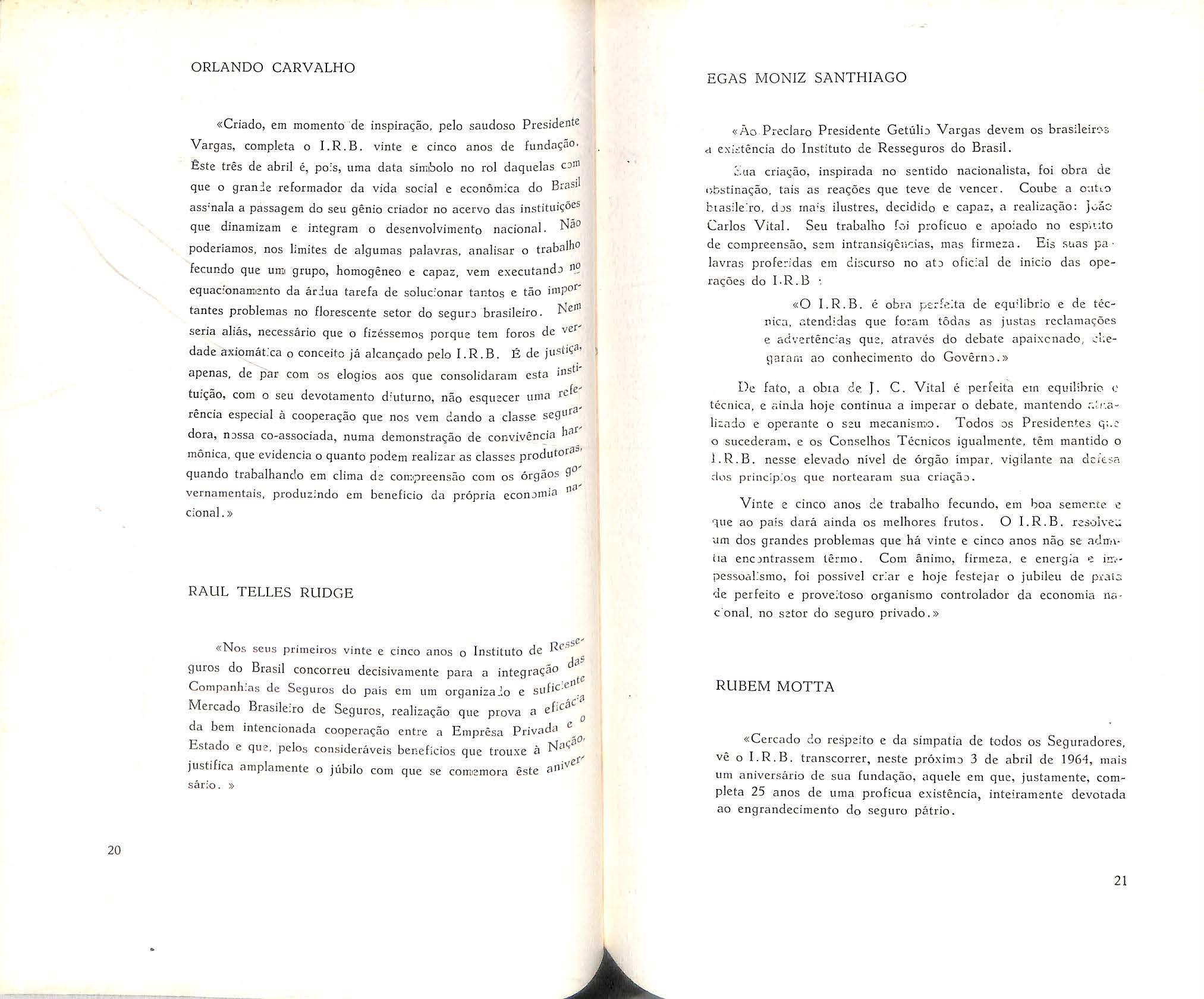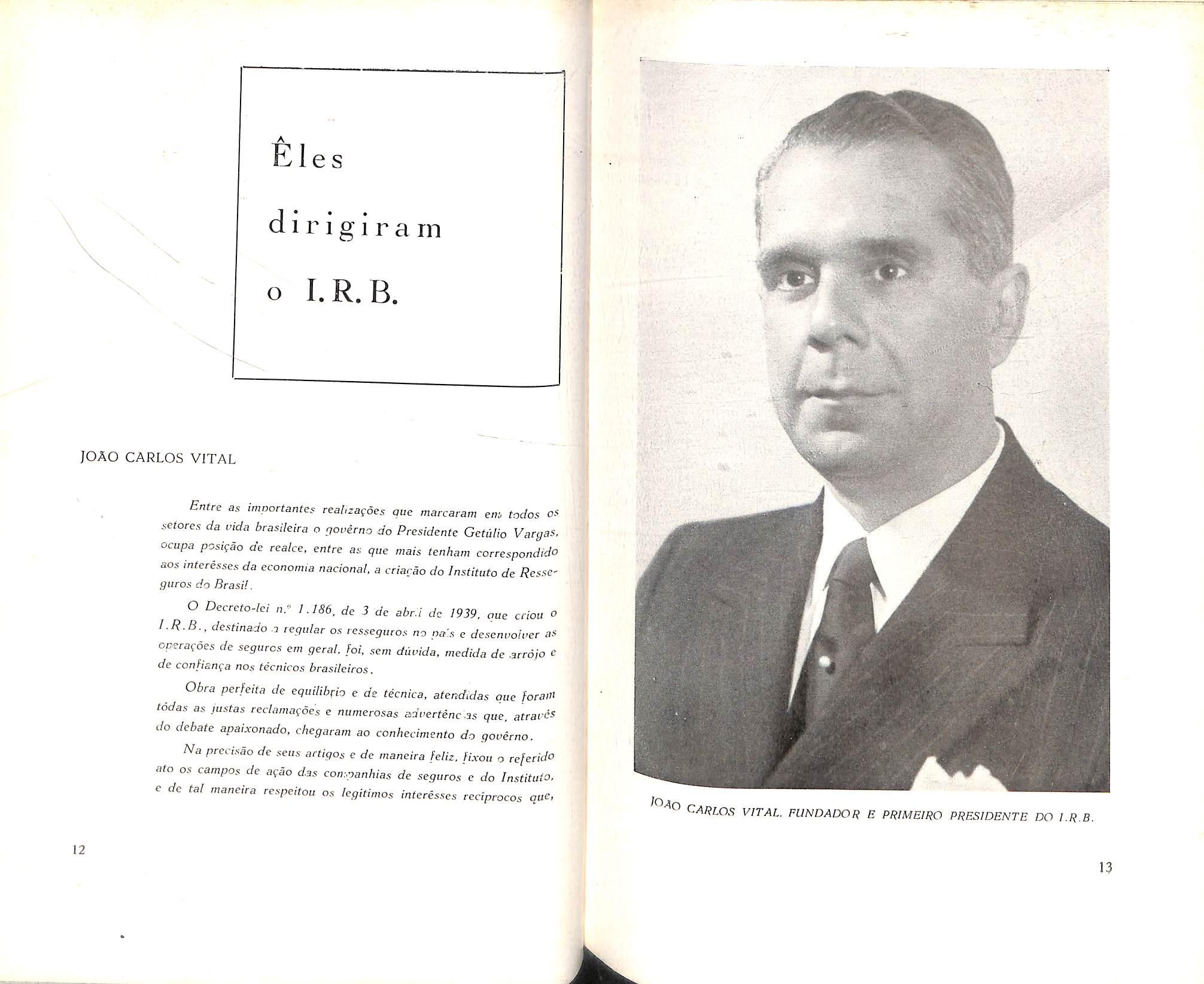 «Mais um aniversario do l.R.B.! Mais uma etapa uencid^ no cam-inho do progcesso e da eHciencia. Neste dia, tao aos irbiatios. voUo o men pensamento para este Institute tao sabi3' mente modelado por ]oao Carlos Vital, fazendo votes oara qt^' sob a egide do operoso Presidente atual. Dr. Oyama Pereira Tei' xeira, continue a sua brilhante carreira em prol do seguro cional.»
