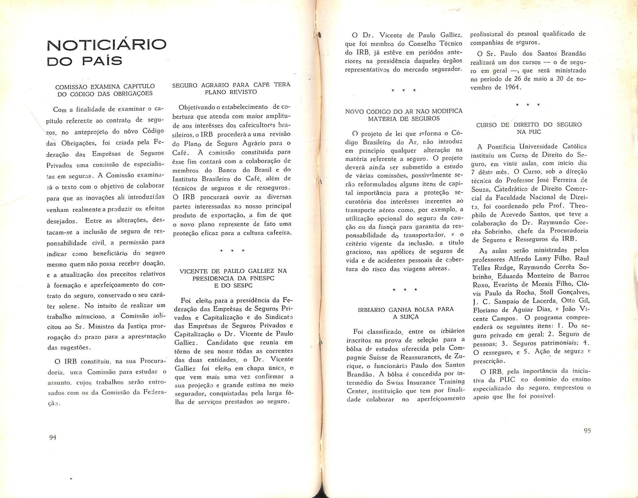 O IRB, pela importancia da iniciafiva da PUC no dominio do ensino especializado do seguro, emprestou o apoio que Ihe foi possivel.
