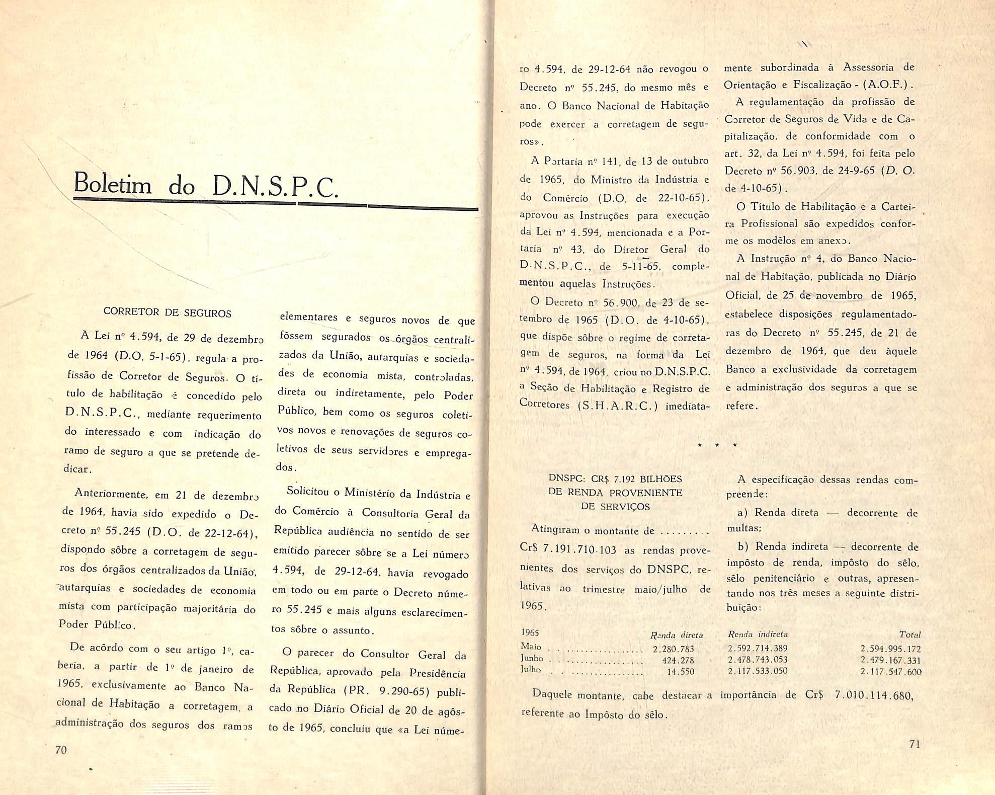 Revista de Seguros, Rio, n'' 530, 1965. Revista do Seguros, Sao Paulo, n' 532, 1965. Revista do Servifo Publico, Rio, julho/dezembro, 1964,