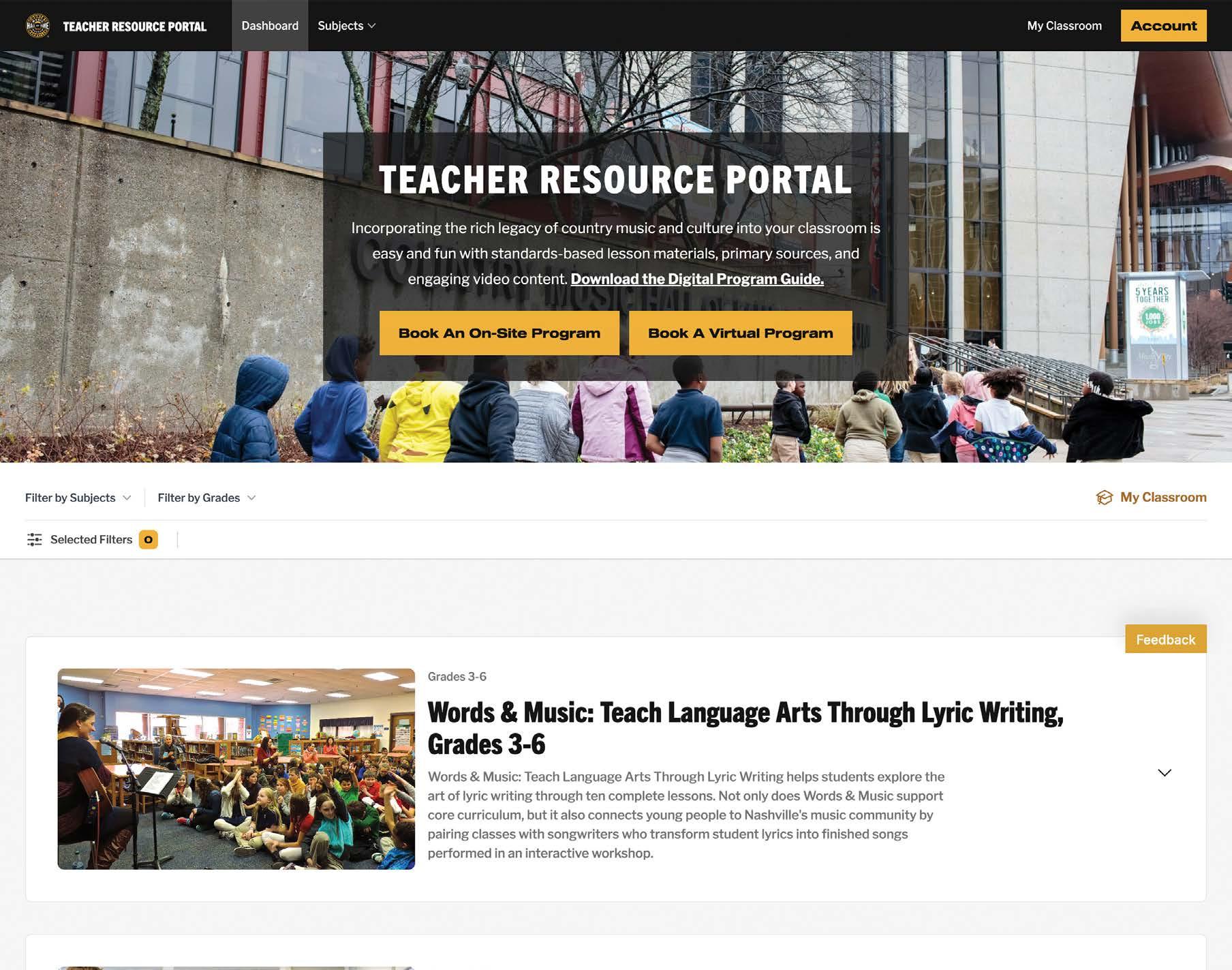 School and teacher programs provide dynamic, interdisciplinary experiences that support curriculum standards in core subject areas. Programs for every grade level are designed to meet virtual and in-person classroom needs through engaging, hands-on learning. Standards-based lesson plans, along with primary sources and classroom materials, make it fun and easy to incorporate the rich vibrancy of country music past and present into your classroom.