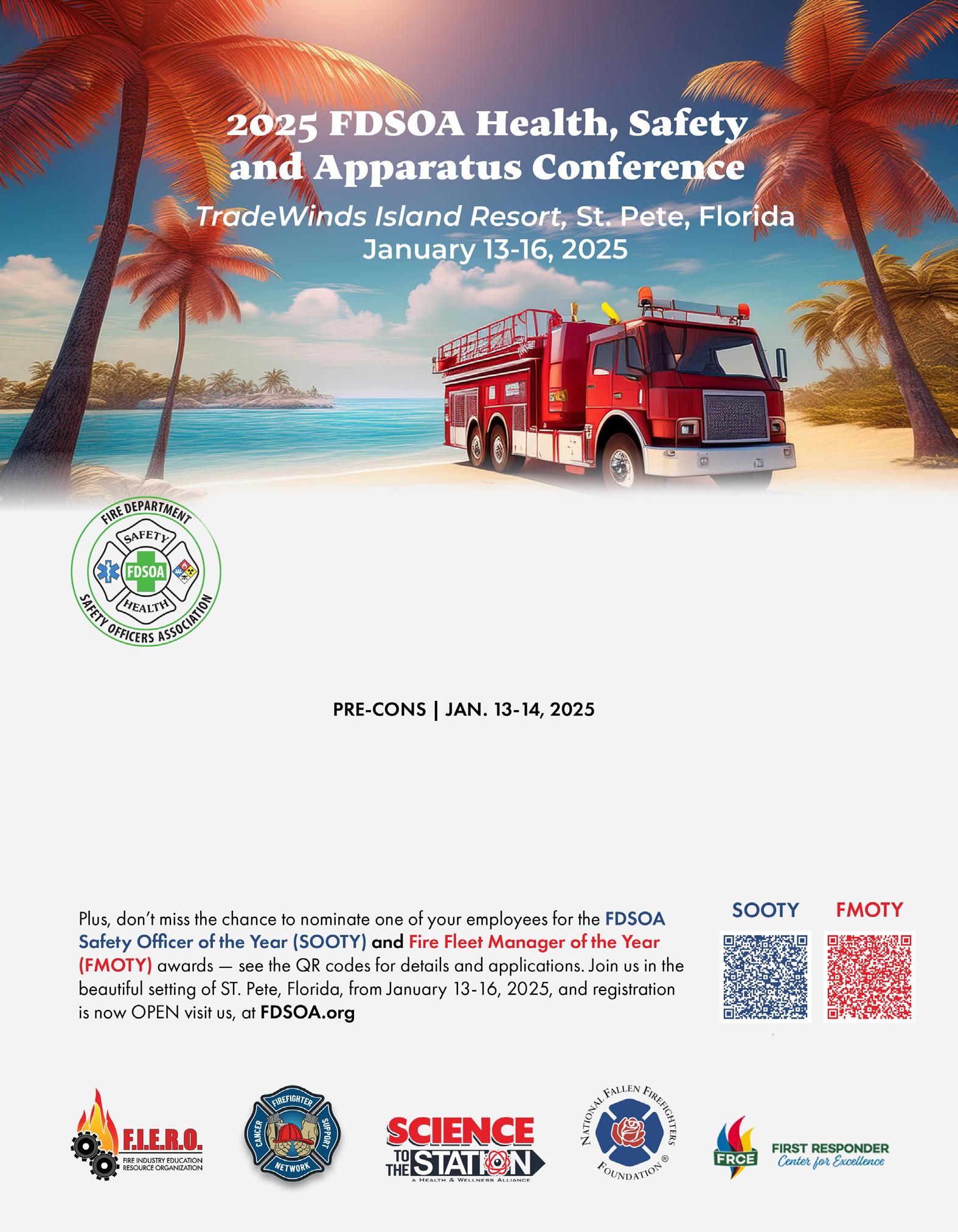 The Fire Department Safety Officers Association (FDSOA), a non-profit established in 1989, promotes safety standards and practices in the fire, rescue, and emergency services community.