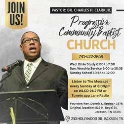 01-04/24 CSENEWS P.7 St. James MissionaryBaptist Church Rev. Ernest K. Polk, Pastor 278 Preston Street Jackson, TN Church Phone 731.868.1516 Cell Phone: 731-499-1445 ernestpolk@ usa.com Rev. Ernest K. Polk, Pastor Get CSENews Delivered to your church 731-300-5047 crcjackson.com Get your CrimeSEEN in Humboldt at Dollar General CountrySide Citgo Tobacco Central In Milan at Quick Mart Moffitt’s Wine and Liquor Trenton & Alamo at Dollar General Bells at S & J Roadside Dollar General