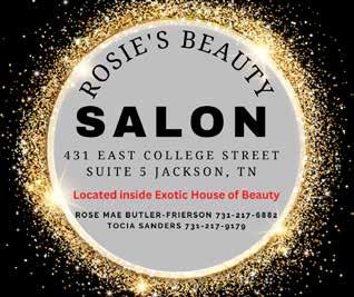 Owner: Brenda Douglas 731-267-0818 Manager: Rochelle Douglas Goldenyears155@gmail.com 155A Carriage House Dr. Ph: 731-736-2440 - Fax: 731-736-3655 Golden Years Adult Day Care A Loving Place for Your Golden Years 802 N. 9th Ave., Humboldt, TN 38343 731-784-1717 www.baskervillefuneralhome.com Staff members -Chancellor Baskerville, Chester Baskerville and Donald Baskerville of Baskerville Funeral Home are caring and experienced professionals who understand that each family is unique and has personal requests and traditions. These requests and traditions are of utmost importance to our staff of licensed funeral directors. Baskerville is a family business with four locations: Humboldt, Alamo, Milan and Trenton Directors of Distinction est. 1955 01-04/24 CSENEWS P.6 586 Airways Blvd Jackson TN 38301 731-736-1121 Owner Jumetric Harrell email: susiemaes78@gmail.com Soul Food Restaurant Baskervillefuneralhome.com 731-784-1717 REV. GEORGE MAYBERRY March 20, 1950December 28, 2023 LEROY VINSON July 8, 1932December 25, 2023 REV. WILLIAM A. WILLIAMSON February 12, 1929December 23, 2023