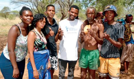 land issues at local and international media platforms. Our government sees this advocacy as a threat because they say we are reporting them to the international community and that we do not want to give land to non-Indigenous people. Our youth face under-development. We don’t have activities that keep us busy and off the streets. Youth face high rates of unemployment, alcohol, and drug abuse. The youth in Tsumkwe need training and funding to start their own businesses, especially in the sector of agriculture, to ensure food security and to fight injustice such as human rights violations.