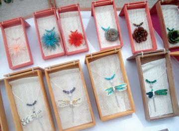 Jewelry made out of plumage by Arte Plumario Kozamalotl.