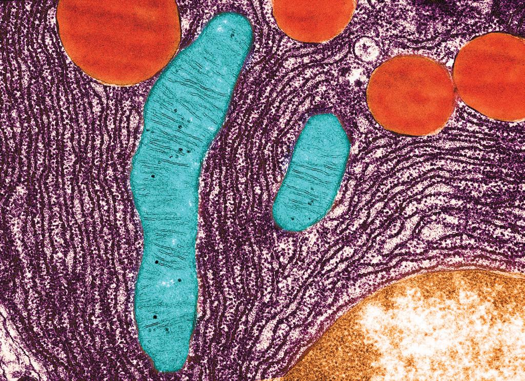 2 a The mitochondrion labelled A has been cut through as a cross-section, whereas the mitochondrion labelled B has been cut through as a longitudinal section.