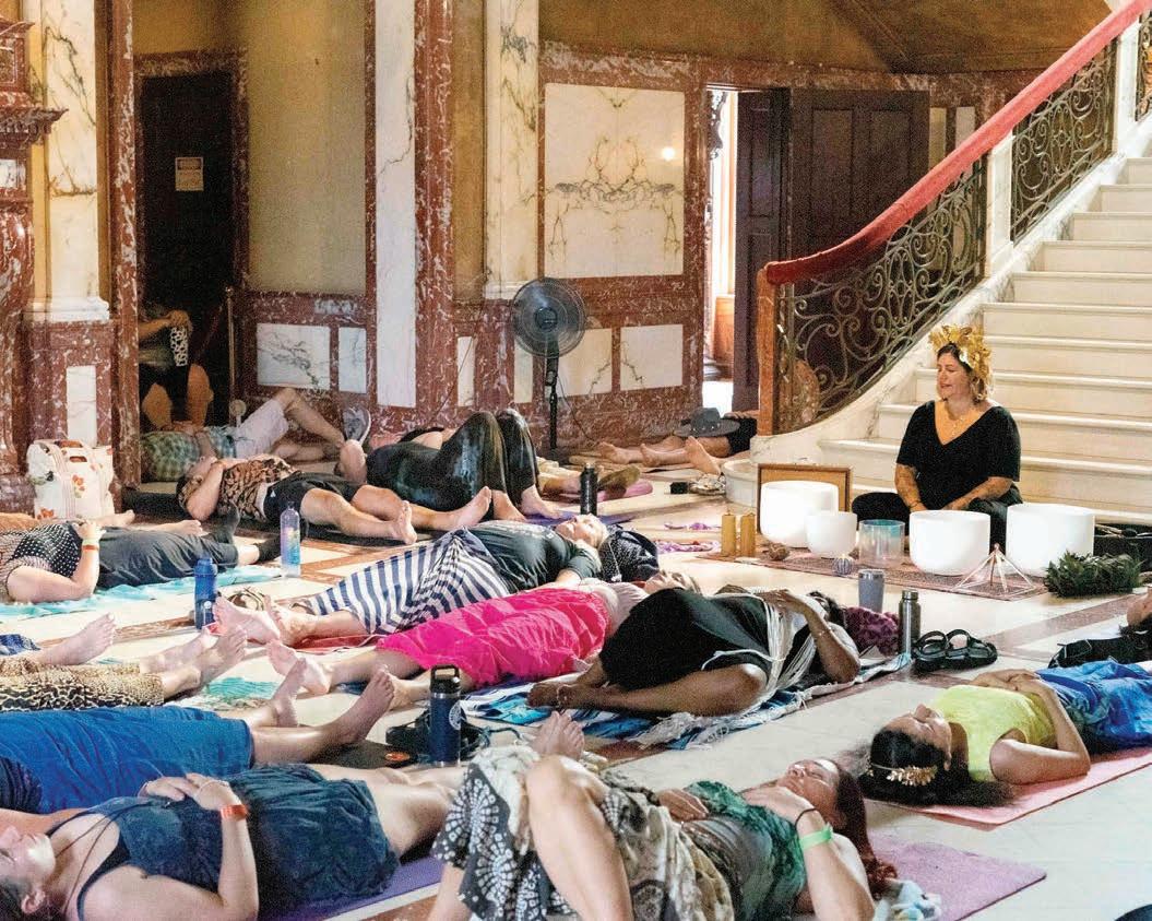 Tom Tom x Fun Cville invited the open-hearted and open-minded to Afton’s Swannanoa villa on Saturday, August 17, for SUN/SETS, an evening of mindfulness and dance by the light of the full moon. Beginning at 5pm, guests were invited to picnic, sketch the property, participate in yoga or a sound bath, and relax at a pop-up tea lounge. As the sun went down, Love No Ego founder Freddy Jackson led the group in a guided meditation. The night culminated in a tour of the palace—an Italianate Renaissance Revival estate gifted from millionaire and philanthropist James H. Dooley to his wife “Sallie” O. May in 1912— and a dance party with two DJ-led sets. Part of Fun Cville’s SUN/SETS series, the Swannanoa event was the third this season. A fourth is slated for Saturday, September 14.