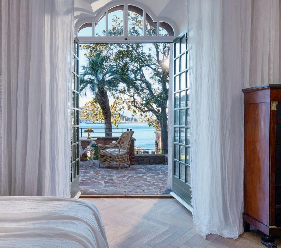 By Eduardo Costerg - Photos Gaelle Le BoulicautWalking through the Château’s salons and corridors, you’d think you were passing from one era to another. Yet, invariably, the sea stretches like a canvas across the windows of every room. The Château enjoys a prime location, with its feet in the water and its eyes on the Baie de Cannes. Marie-Christine Mecoen, Artistic Director of the Millésime Group, has given the building a new lease of life – and breathed into it the warmth so typical of southerners – by combining its ancient heritage with the present: the period parquet floors have been brought up to date, the woodwork restored, the door frames and wooden staircase preserved… the Maison has lost none of its charm. But nostalgia is out of the question! Above all, it is about telling the story of this centuries-old Château and bringing it up to date. Marie-Christine Mecoen’s narrative come from the materials, colours and volumes. The silk panels above the beds are a reference to the silk merchant from Lyon who owned the property for a time, while the palette that unfolds from room to room is inspired by the
