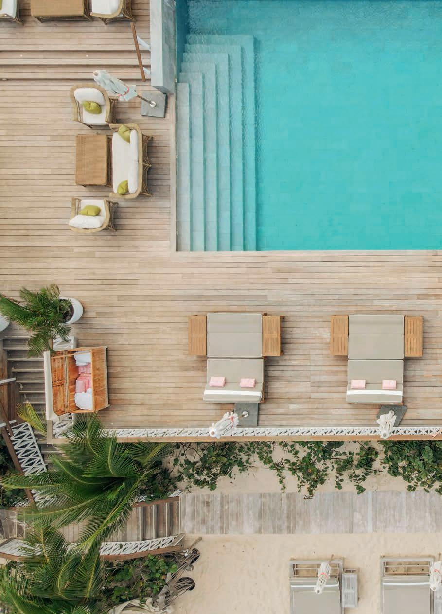 The suites open onto gardens whose abundant foliage led the guests from the beach to the villas, from the restaurants to the spa. Flowers, leaves, trees and shrubs are not just an association of shapes and colours, they also compose an olfactory score that begins as soon as you enter Cheval Blanc St-Barth and continues right inside. Madison Cox puts it this way: ‘The lush vegetation appears in the windows like living paintings and from the outside, the decoration responds to the flowers, palms, butterflies and birds, as if in a total work of art.’