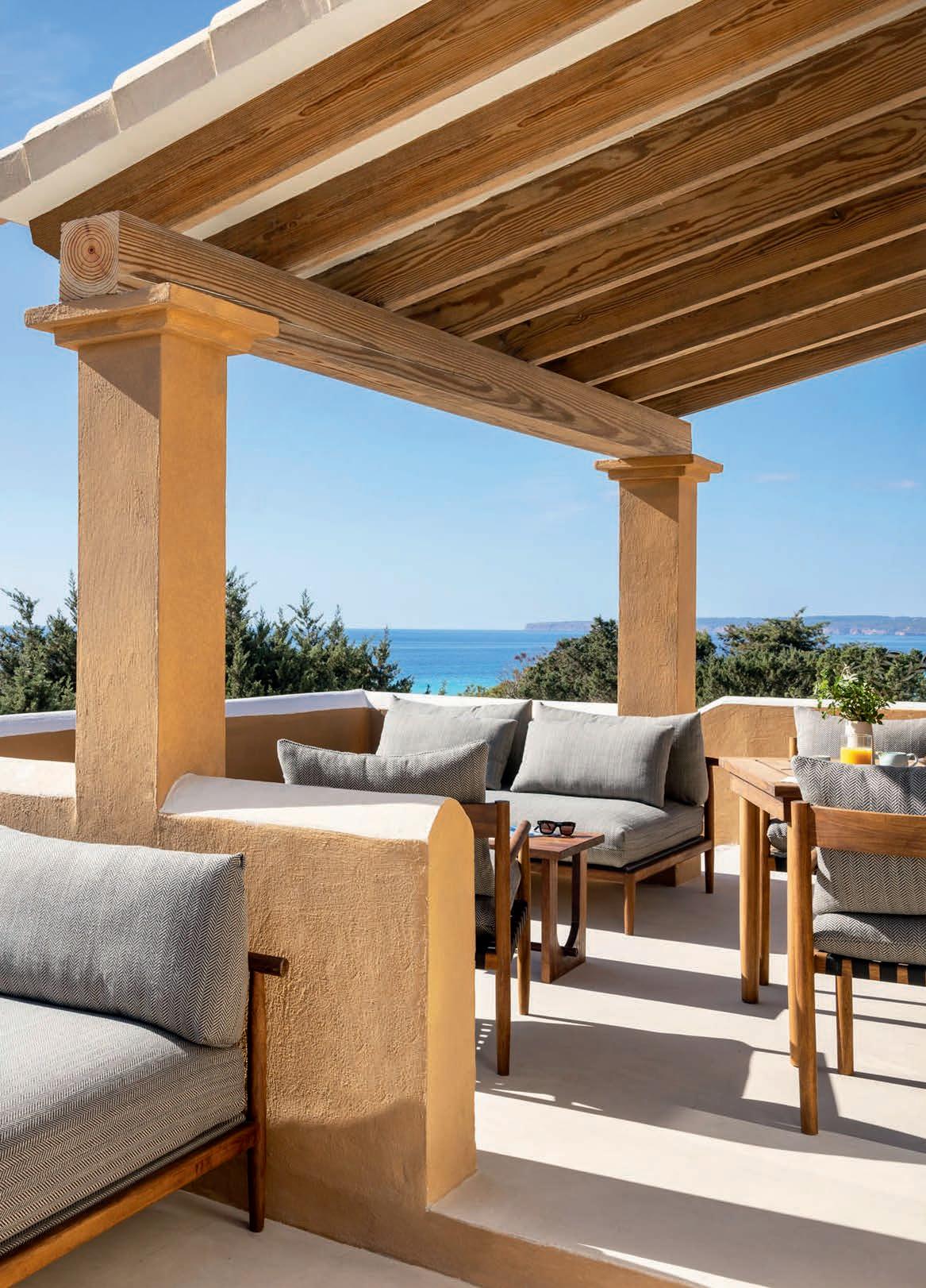 With the opening of Dunas de Formentera, it is now enriched by a very special 5-star boutique hotel. The hotel is being opened by Marugal, a hotel management group specializing in individual luxury hotels such as Cap Rocat, Vermelho. This new 5-star hotel promises an intimate and refined experience for travelers looking for luxury, but also for families looking for comfort. The hotel has 45 rooms and suites overlooking the dunes with an average size of 40 m 2 . The architecture was inspired by the local culture and surrounding nature. The fact that the sand directly touches the individual buildings and a gentle scent of juniper and sea salt wafts through the rooms blends the interior with the exterior.