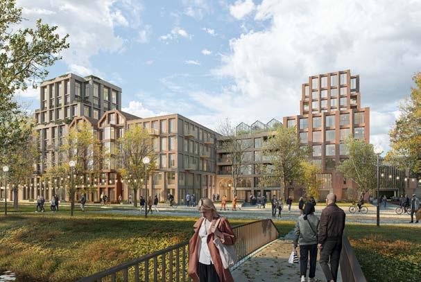 LEVENDIGE EN GROENE STADSWIJK MET 800 NIEUWE, DUURZAME WONINGEN. OUDE KANTOREN MAKEN PLAATS VOOR EEN DEEL VAN DEZE WONINGEN. EN VOOR HET NIEUWE DORDTHUIS. DIT GEBOUW IS HET GEZAMENLIJKE ONDERKOMEN VAN DE GEMEENTE, DE BIBLIOTHEEK, DE SOCIALE DIENST DRECHT STEDEN EN DE VVV.