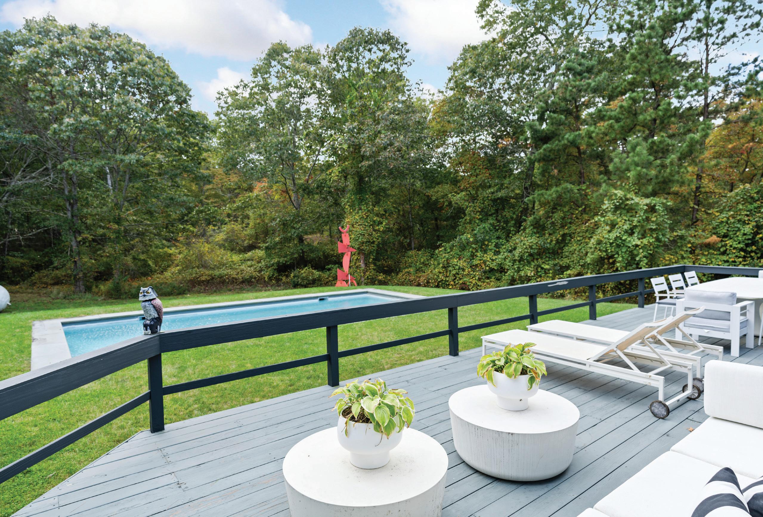 Welcome to this architecturally stunning contemporary home, where modern design meets functional living spaces. Upon entry, the clean lines and open layout create an immediate sense of flow, with large windows that bathe the home in natural light and provide stunning views of the surrounding landscape. The kitchen, designed with both style and practicality in mind, features sleek stainless steel appliances, ample counter space, and a thoughtful layout for ease of cooking and entertaining. Adjacent to the kitchen, the dining area overlooks the lush outdoors, seamlessly connecting indoor and outdoor living with access to the expansive deck and heated pool. The living spaces showcase a perfect balance of form and function. Unique design elements, including textured accent walls and stylish lighting, add to the home’s distinct charm, while the open-concept layout creates ideal spaces for relaxation and entertainment. The cozy sitting areas and stylish modern fireplace provide warmth and ambiance. This home offers two bedrooms, including a convenient first-floor bedroom with easy access to the main living areas. Upstairs, the private primary suite serves as a peaceful retreat, featuring a spacious bedroom, a bath complete with a sauna, soaking tub, and a large walk-in closet. Outdoors, the spacious deck is perfect for lounging or dining al fresco, with a heated pool ready for enjoying long summer days. The detached garage provides flexibility, whether you’re looking for a home office, art studio, or extra storage space. The property is also zoned for up to four horses and has plenty of room for expansion, offering endless possibilities for customization. Situated in Flanders, NY, this home is an ideal retreat for those seeking privacy without sacrificing accessibility. Just a short drive from Manhattan, and close to both The Hamptons and the North Fork, this home offers the best of both worlds.