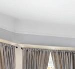 The curved walls, finished in a custom dark ivory color, are accentuated by recessed lighting that meets the oak floors and guides visitors into hidden rooms and nooks.