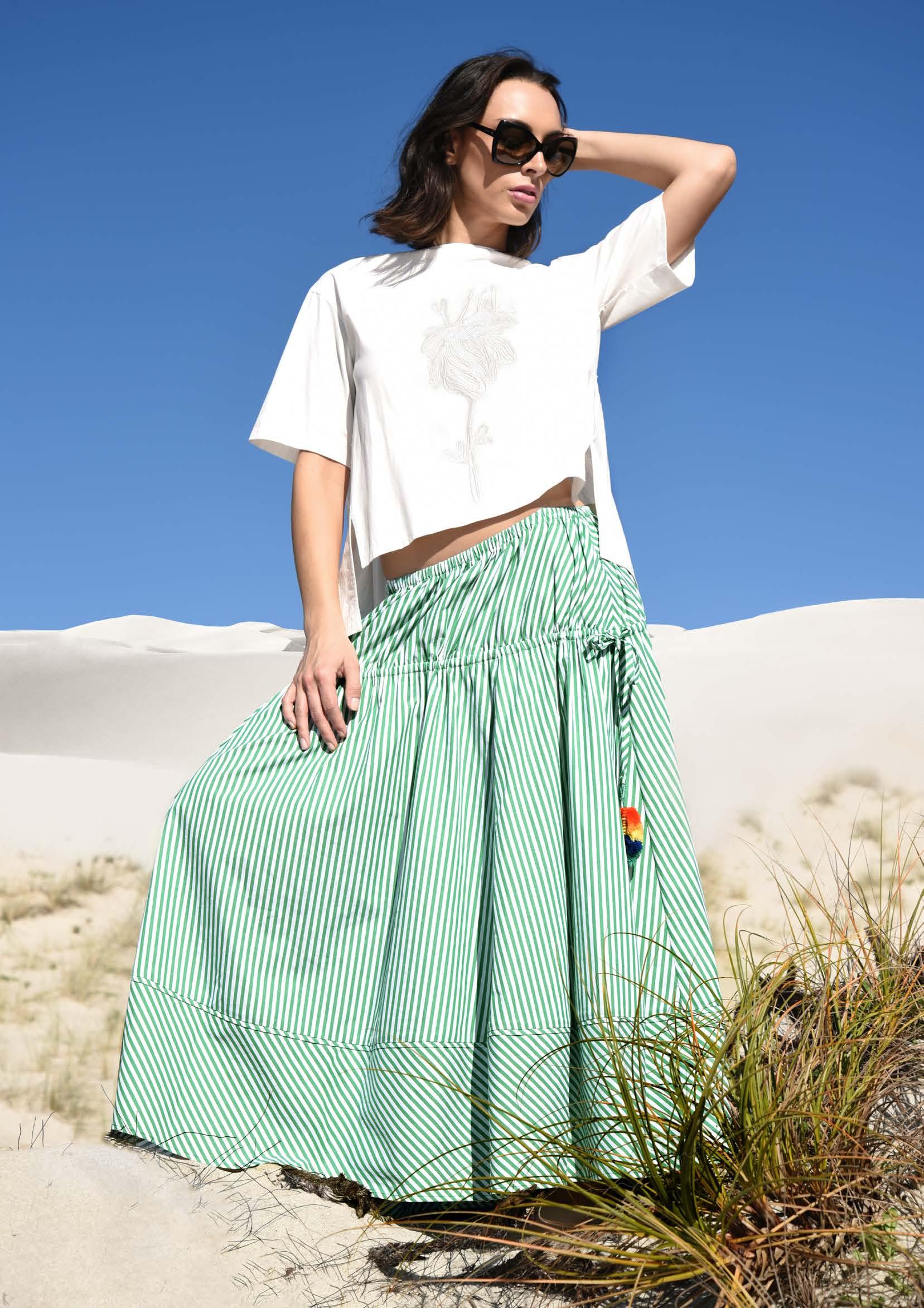 CO3611-17SU26 • SKIRT GREEN STRIPE