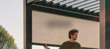 RENSON Algarve, Aluminiumdach mit elektrisch drehbaren Lamellen, freistehend oder mit Fassadenmontage, optional: elektrische Senkrechtmarkise, LED in Lamelle. Massanfertigung möglich.