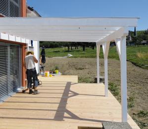 Pergola Holz, kdi B inkl. hitzeabweisender Bedachung (Spundwandplatte Polycarbonat Silbermetallic). PreisA für Pergola ohne Dacheindeckung: Fr. 565.–. Weitere Bedachungsmöglichkeiten auf Anfrage