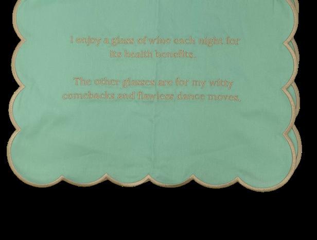 I ENJOY A GLASS OF WINE EACH NIGHT FOR IT’S HEALTH BENEFITS. THE OTHER GLASSES ARE FOR MY WITTY COMEBACKS AND FLASWLESS DANCE MOVES.