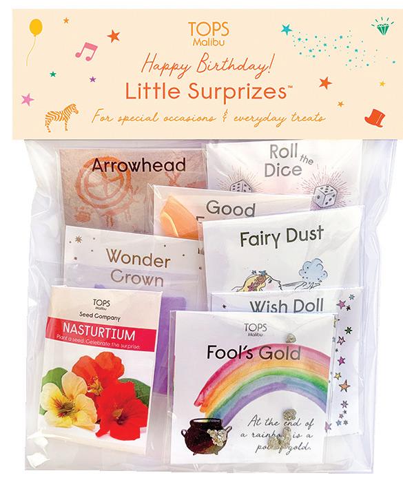 WHAT’S INSIDE: Gifts vary and include: Surprize Ball®, crown, Confetti POP, Wish Capsule™, Wish Paper ™, vintage-style toys and party horns, sweets, fortune, quote, gemstone, fun jewelry, coin, tattoos and more!