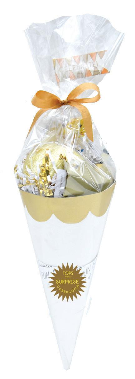 FUN FACT: In Germany for centuries, parents have given a large cone filled with school supplies to their children on their first day of school. My mother gleefully told me about this Schultüte tradition from her childhood. Yes! TOPS will make them with celebratory surprises!