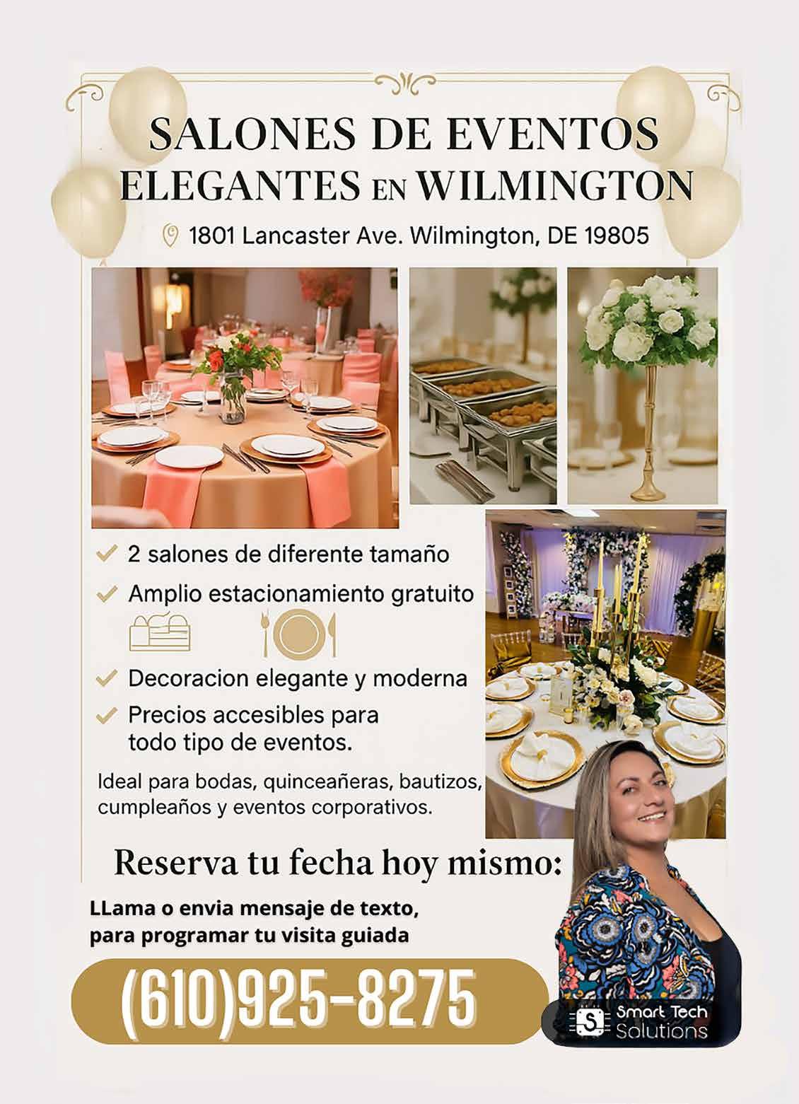 En cuanto a las áreas donde prestamos servicios, cubre la zona local y el sur de Delaware, así como el área triestatal que abarca Pensilvania, Nueva Jersey y Maryland. También estamos dispuestos a viajar a otros lugares con un costo adicional por el traslado.