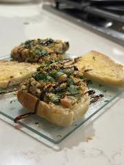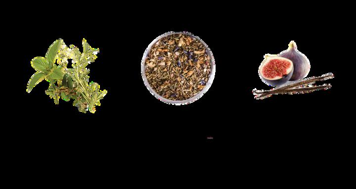 Balsamic vinegar, feta cheese, honey, matcha, olive oil, salt, vanilla