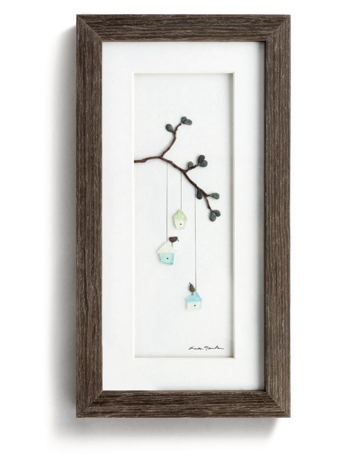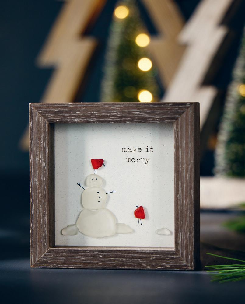 Sharon Nowlan’s elegantly minimalist style is a delightful way to add festive charm to your space. Her designs combine natural elements like pebbles and sea glass, artfully arranged into wintertime scenes that celebrate the joys of the season.