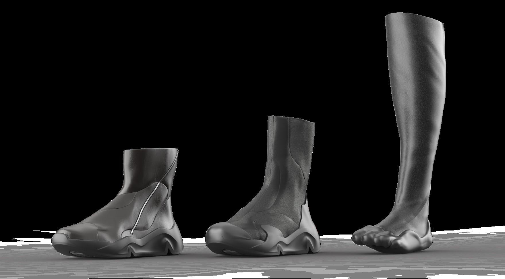 a high emphasis on digitalisation has been a key component in the development process – 3D scanning of the leg was used to understand and incorporate the leg’s anatomy into our shoe, making it a natural extension of the human body