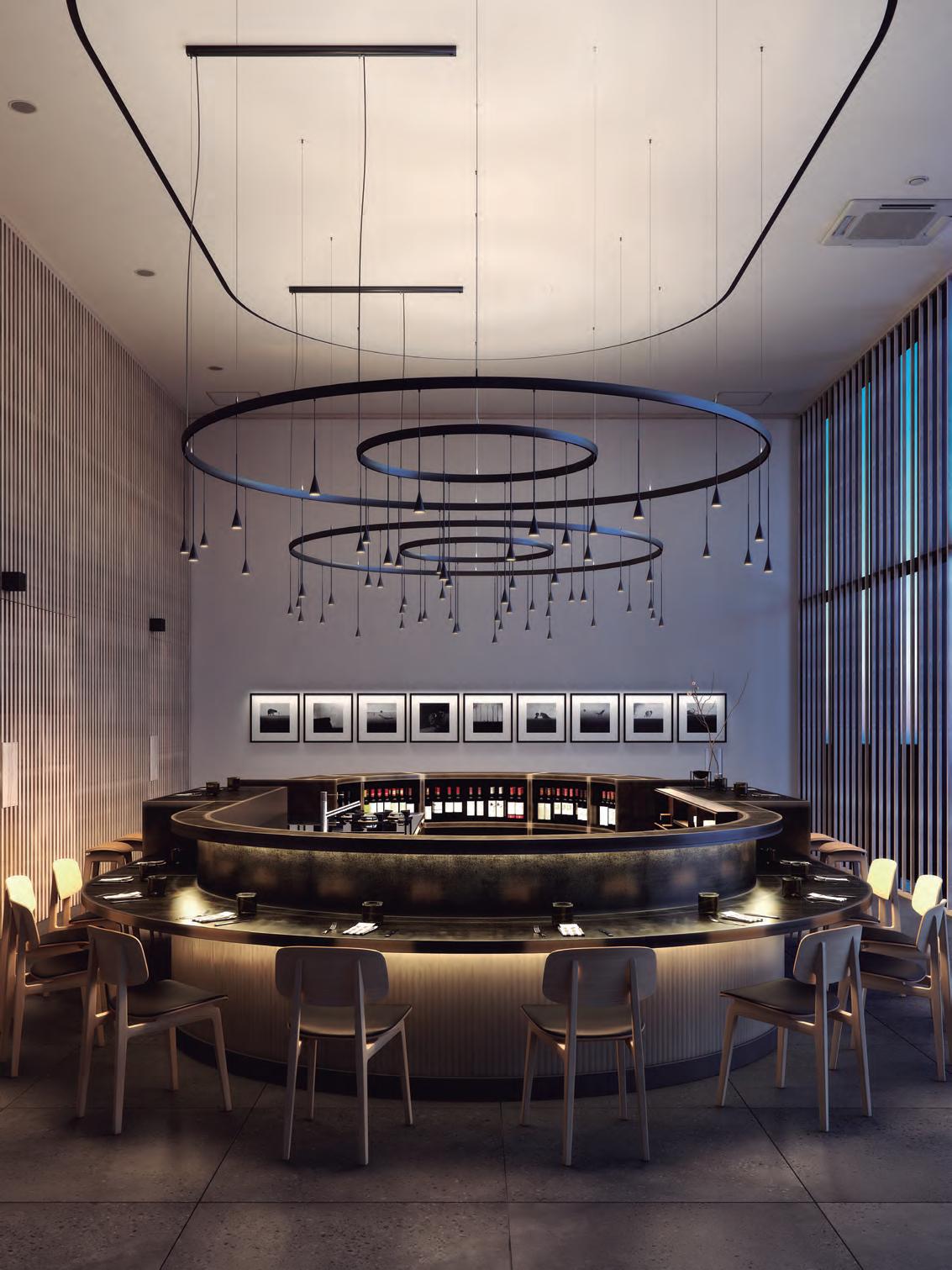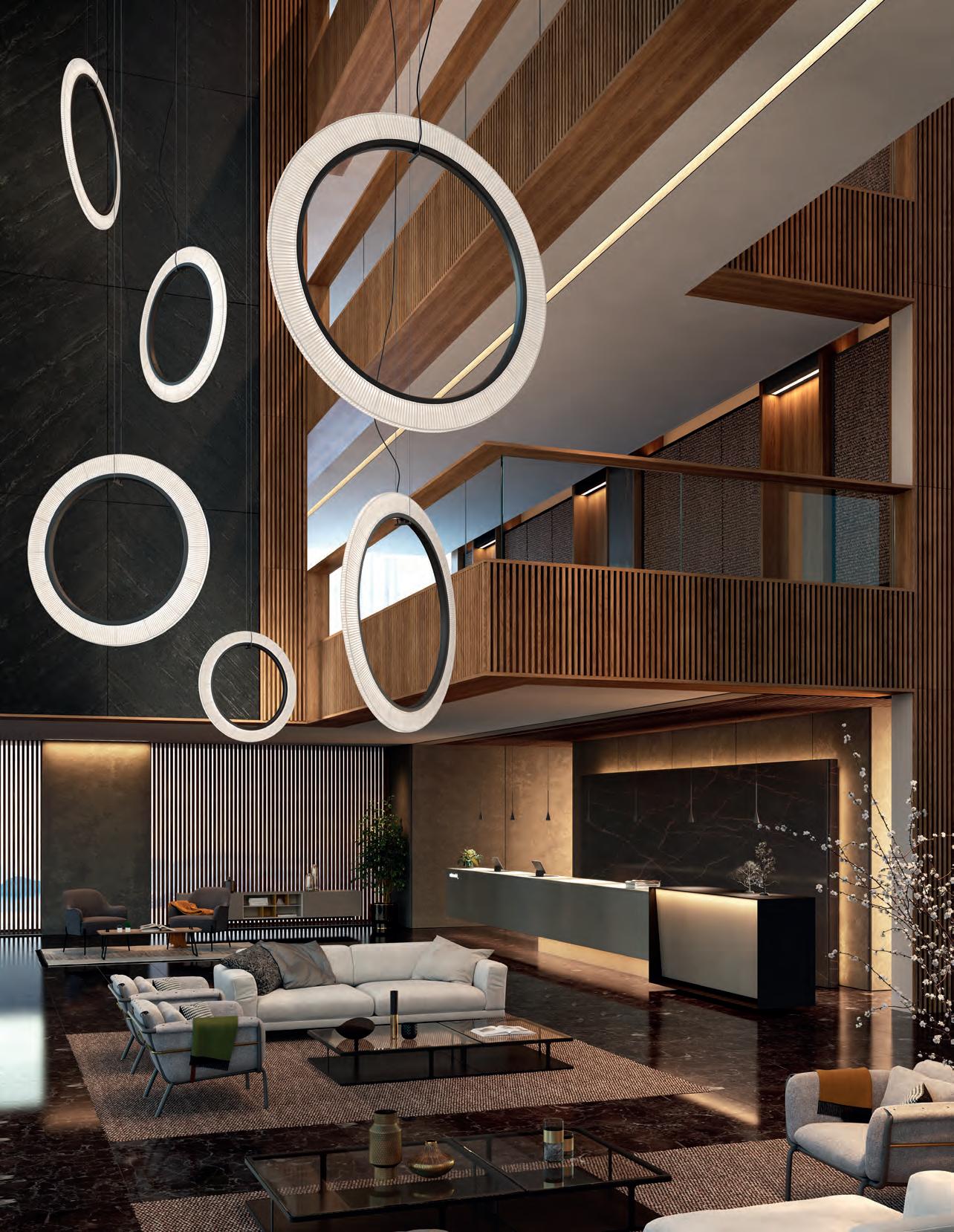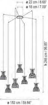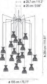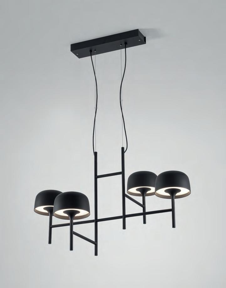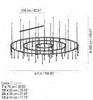 Inspiradas en las clásicas lámparas de araña Mª Teresa, las Bol nacen como un Chandelier contemporáneo de gran formato cuya identidad se encuentra en su cuerpo opaco y el halo de luz superior e inferior que desprenden sus pantallas. Estructuras livianas y flotantes con un sobrio y elegante efecto de luz en la oscuridad.