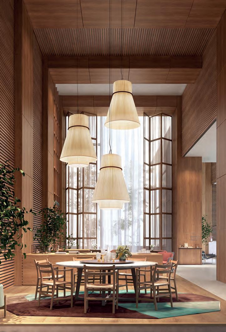 La colección Urban ofrece luz de ambiente a través de la pantalla de cinta hecha a mano, aportando calidez e intemporalidad tanto a ambientes residenciales como contract.