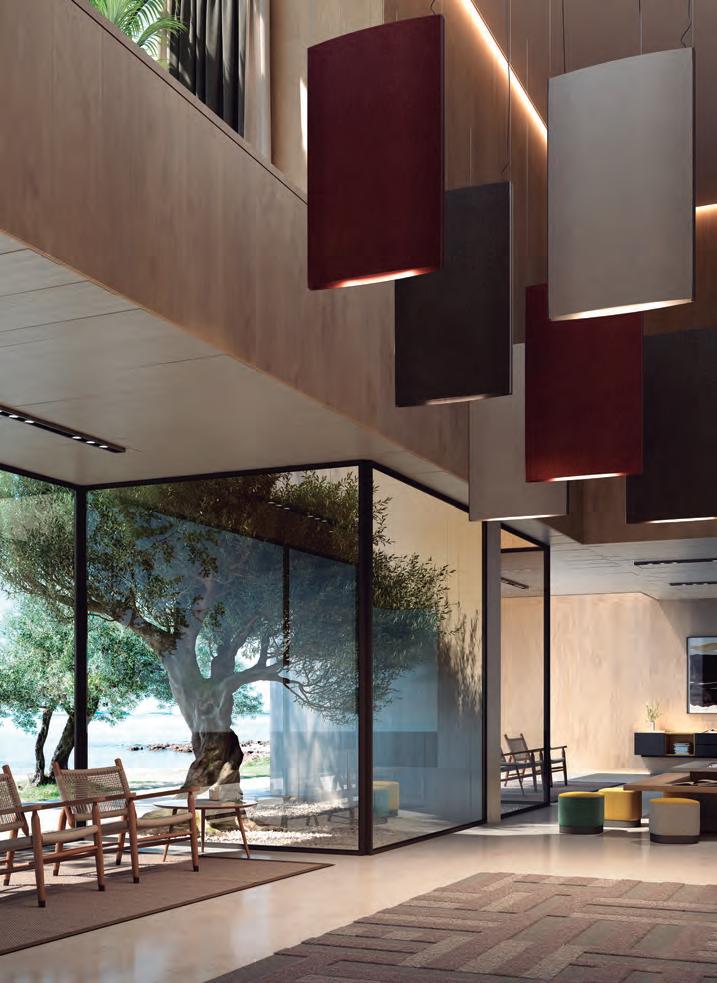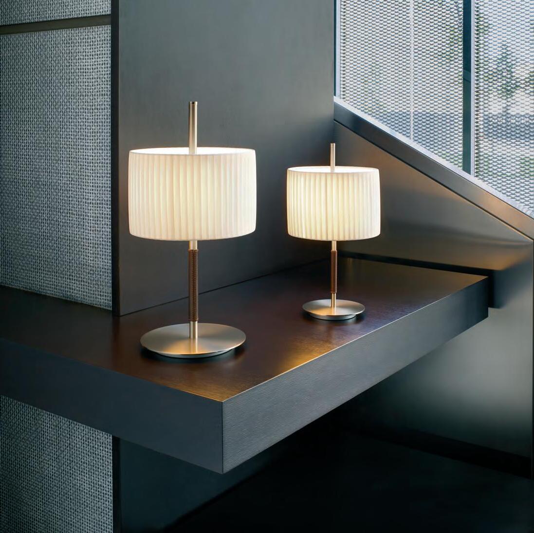 Danona is a good example of contemporaneous and timeless product adaptable to any environment. Both leather along with the ribbon shades contribute to its warmth.